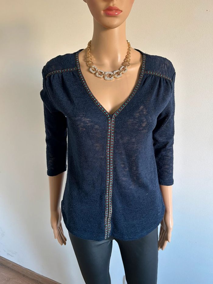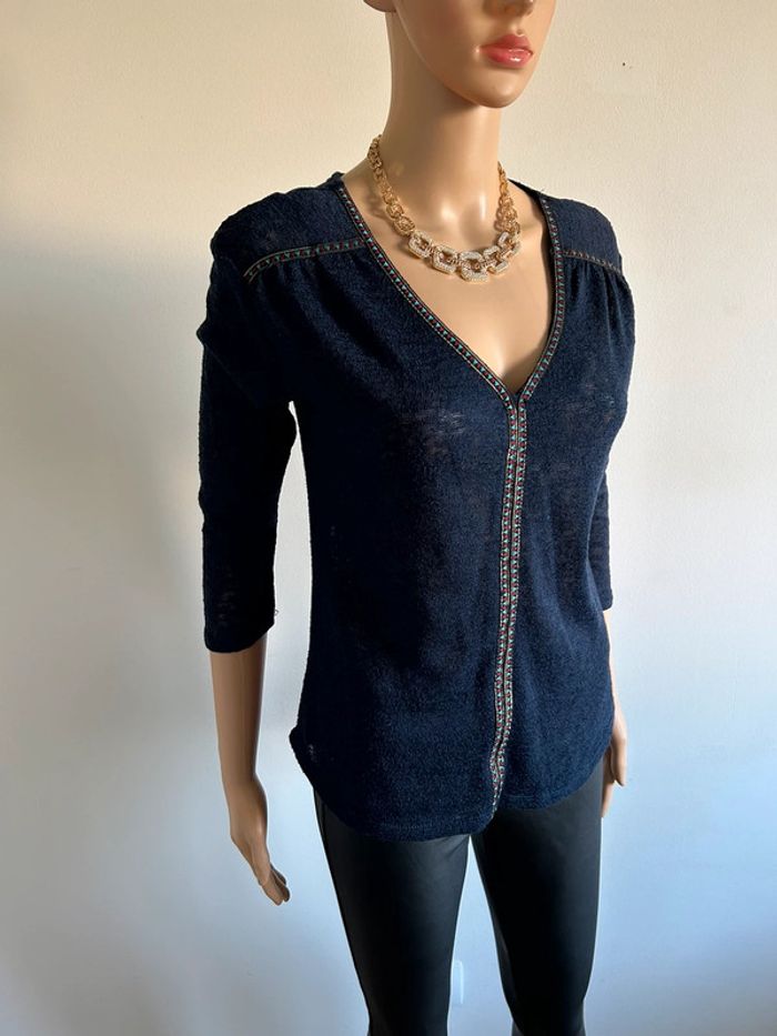 Blouse bleue marine avec manches 3/4 Morgan taille XS bon état - photo numéro 3