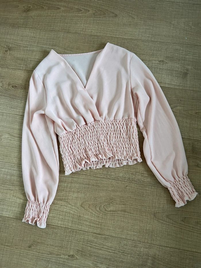 Blouse courte rose claire à manches longues taille unique jamais portée - photo numéro 2