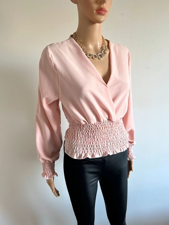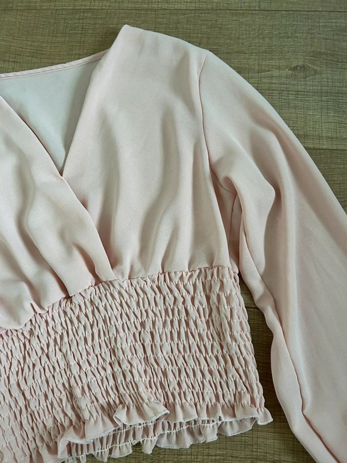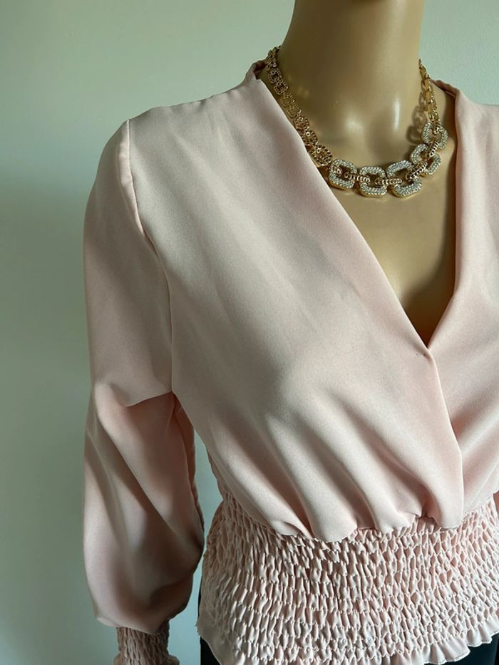 Blouse courte rose claire à manches longues taille unique jamais portée - photo numéro 4