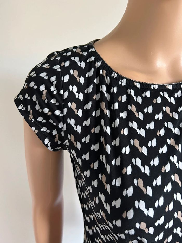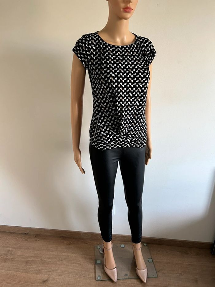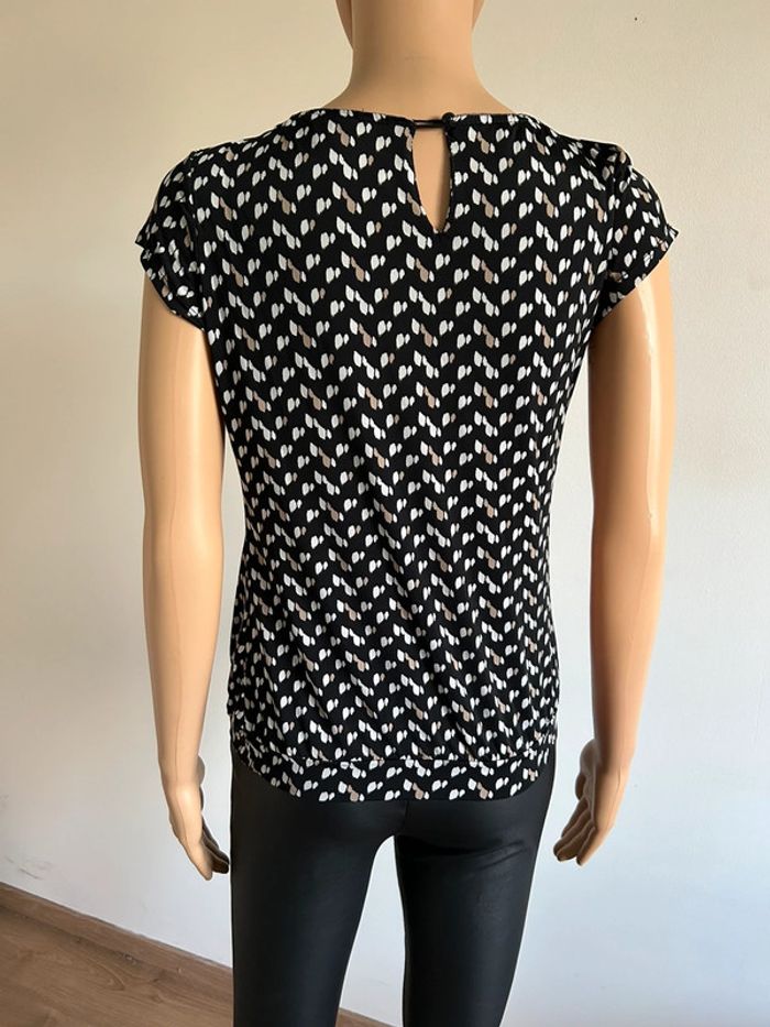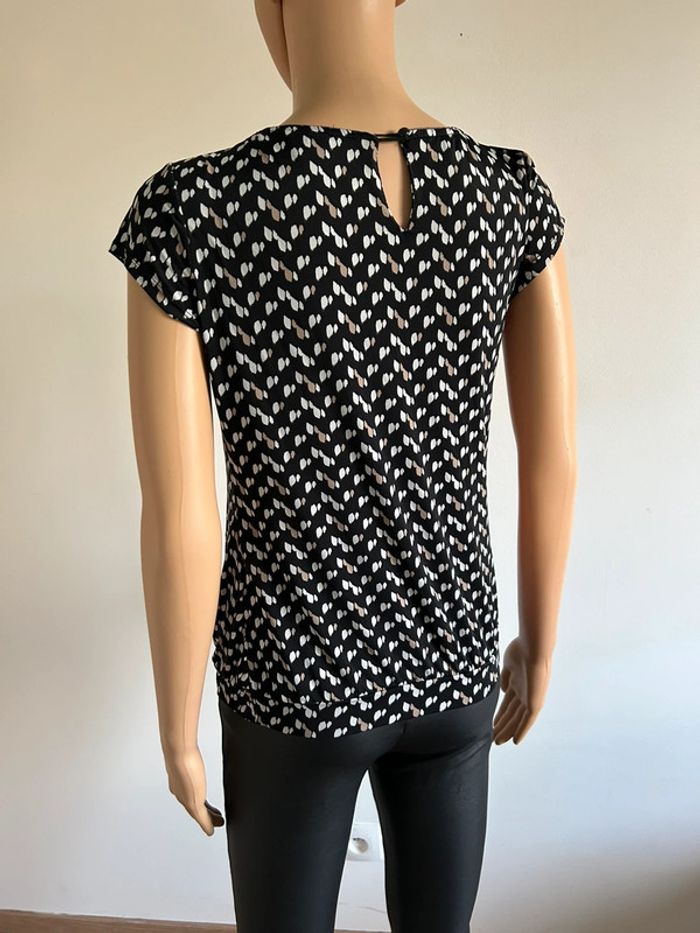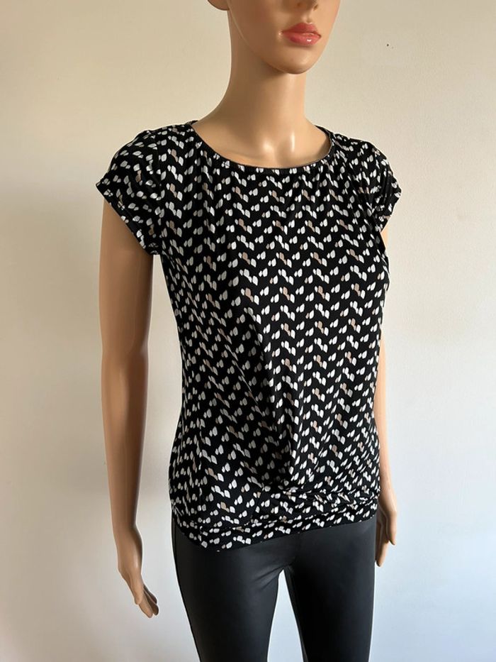Jolie blouse imprimée noire et blanche, à manches courtes, de marque LolaLiza. Taille 36. Jamais portée, état neuf. aisselle à aisselle 41 cms et plus épaule à épaule 34 cms et plus taille 39 cms et plus longueur depuis épaule 52 cms Le tissu est extensible 95% polyester et 5% elasthanne Le prix reste négociable dans la limite du raisonnable. Un petit cadeau dans le colis 🌸 (Boîte 8)