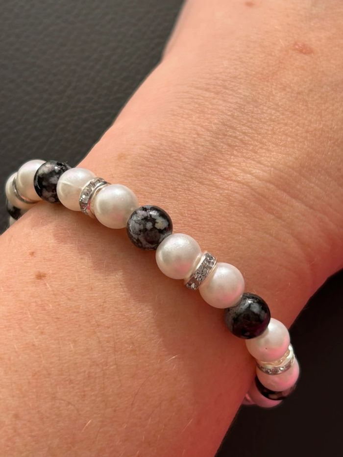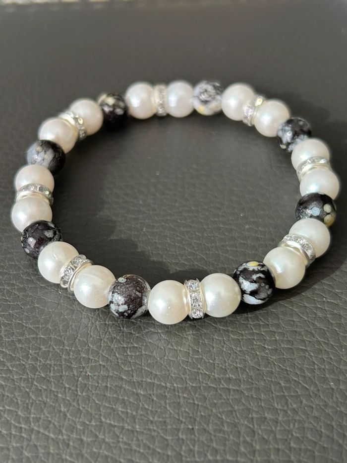 Bracelet nacré et noir en perles taille unique jamais porté - photo numéro 1