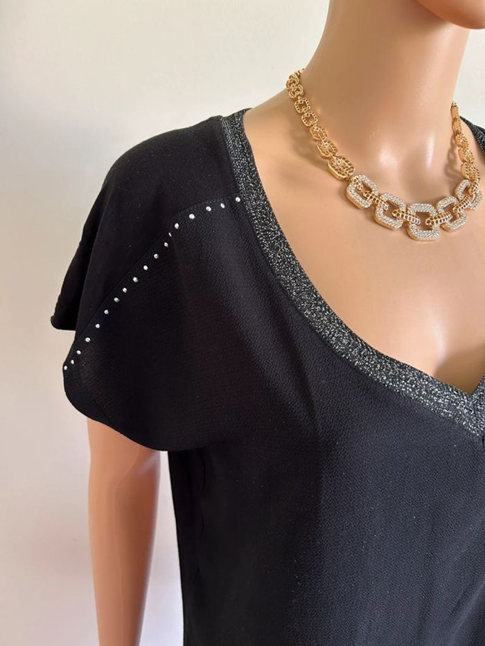 Blouse noire et pailletée à manches courtes Breal taille L TBE