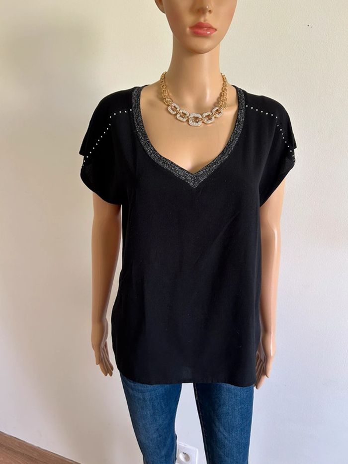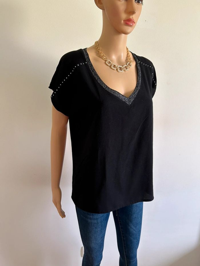 Blouse noire et pailletée à manches courtes Breal taille L TBE - photo numéro 13
