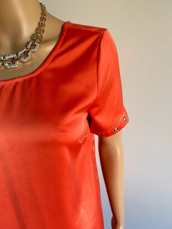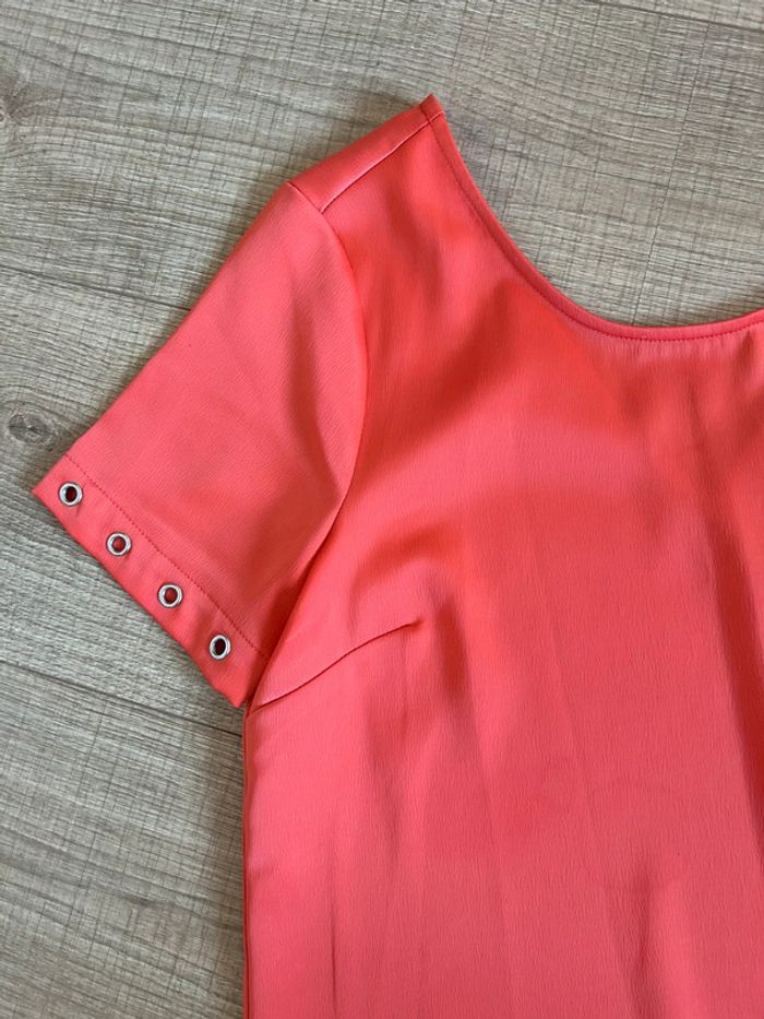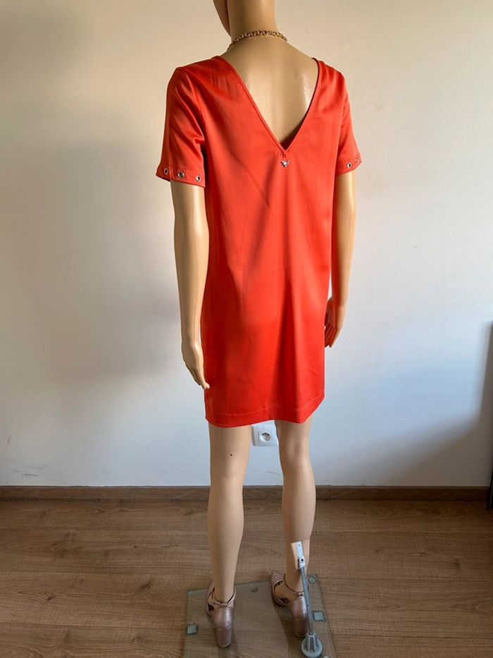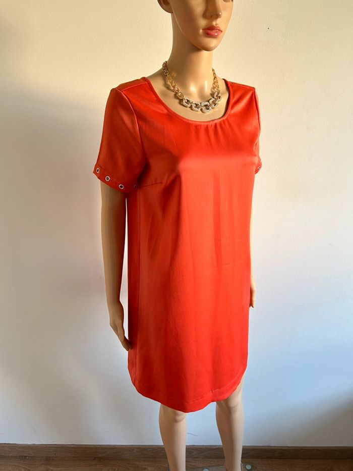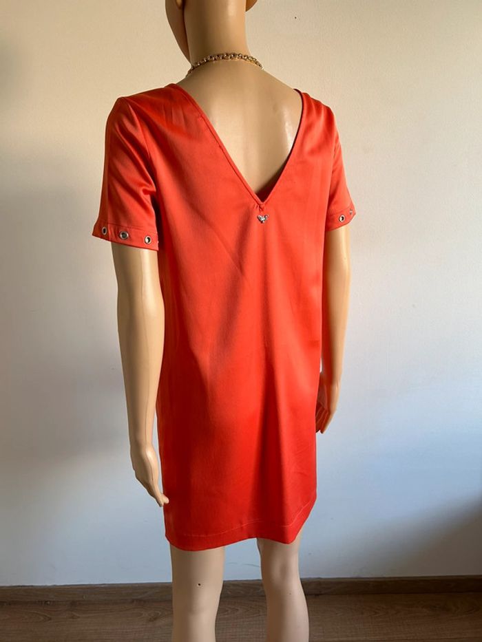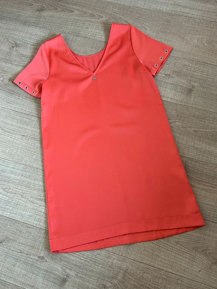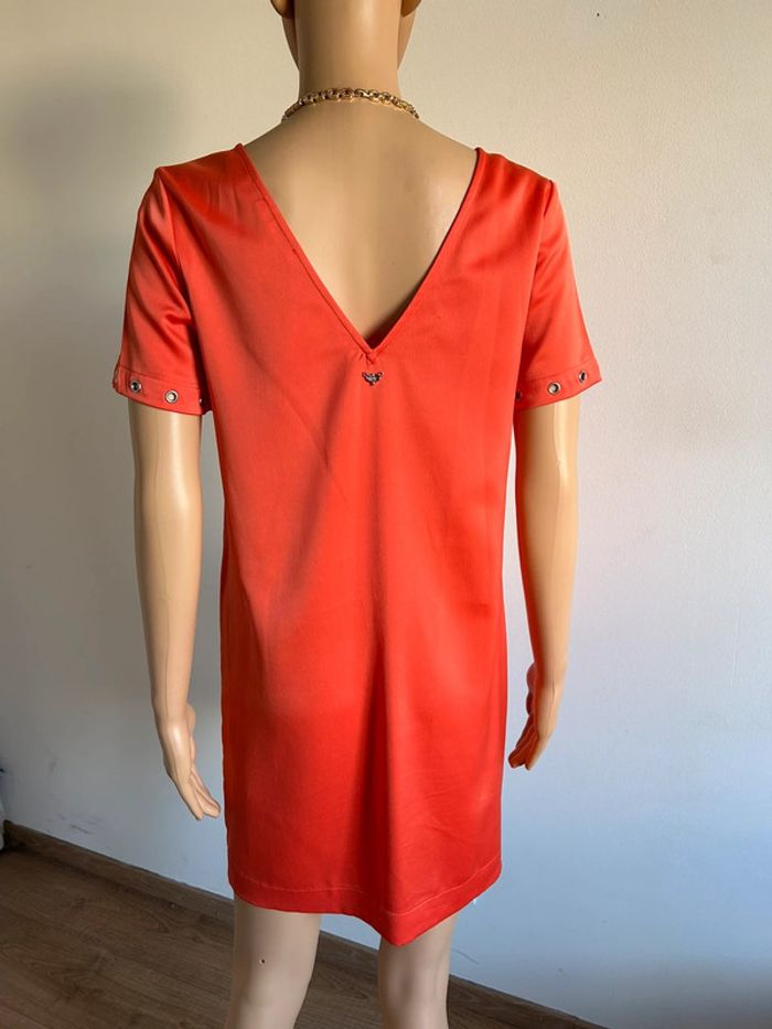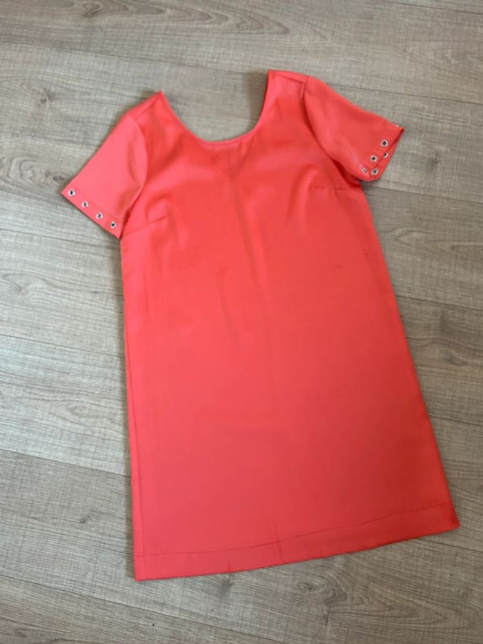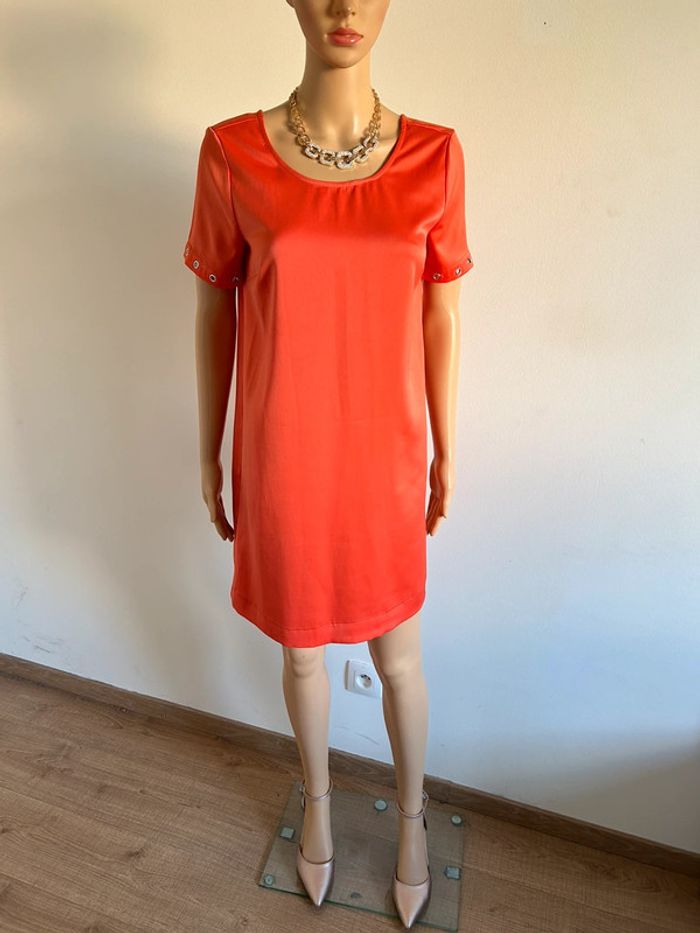 Jolie robe orange corail à manches courtes, de marque LPB.