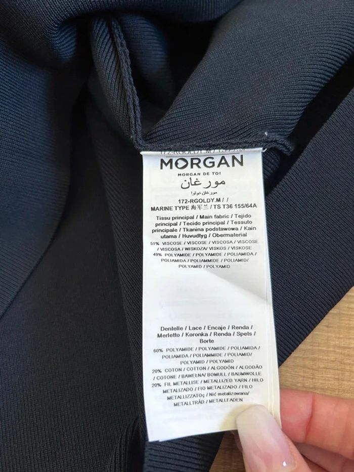 Magnifique robe bleue marine à manches longues, avec dentelle aux reflets dorés, de marque Morgan. Fermeture dans le haut du dos. Taille S. Elle est neuve avec étiquette. aisselle à aisselle 39 cms à 49 cms épaule à épaule 32 cms à 38 cms longueur manches 60 cms taille 34 cms à 42 cms longueur depuis épaule 89 cms Le tissu est extensible 51% viscose et 49% polyamide Le prix reste négociable dans la limite du raisonnable. Un petit cadeau dans le colis 🌸 (Boîte 40)