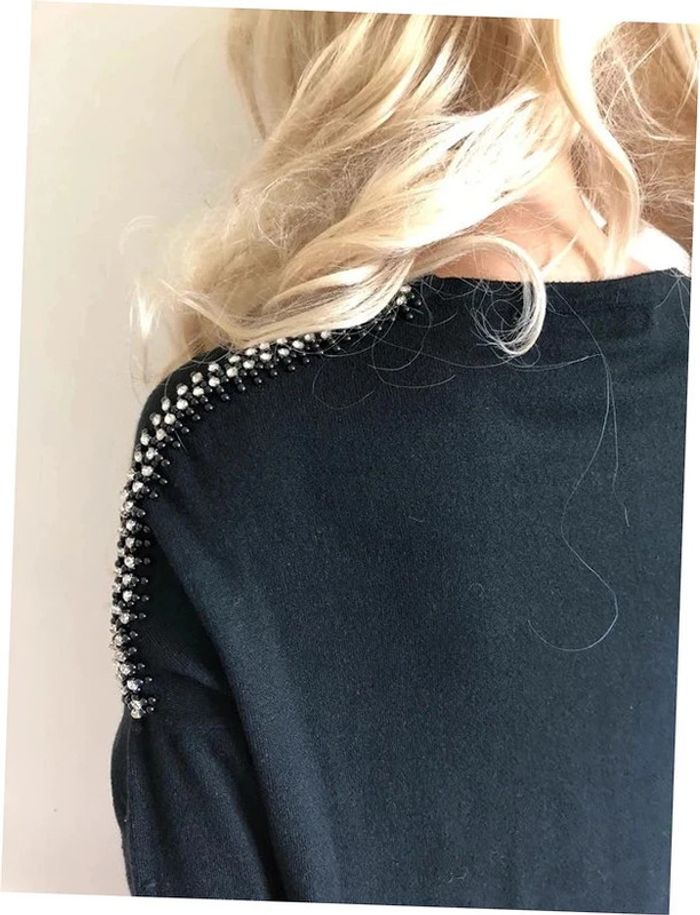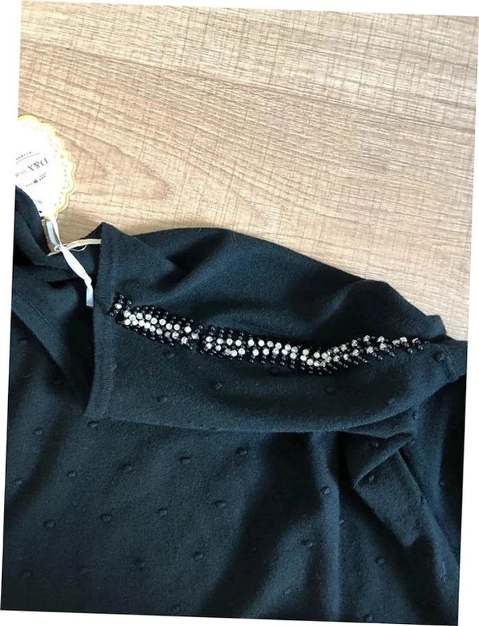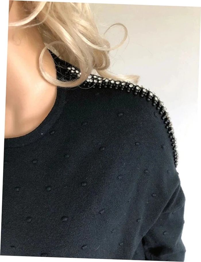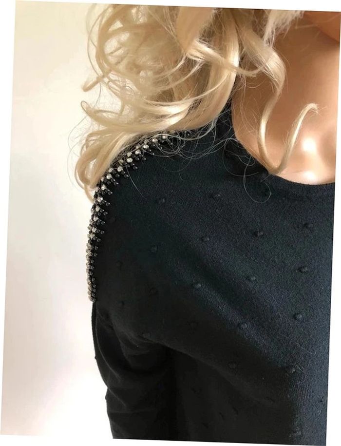 Pull noir neuf à manches longues avec strass taille unique - photo numéro 14