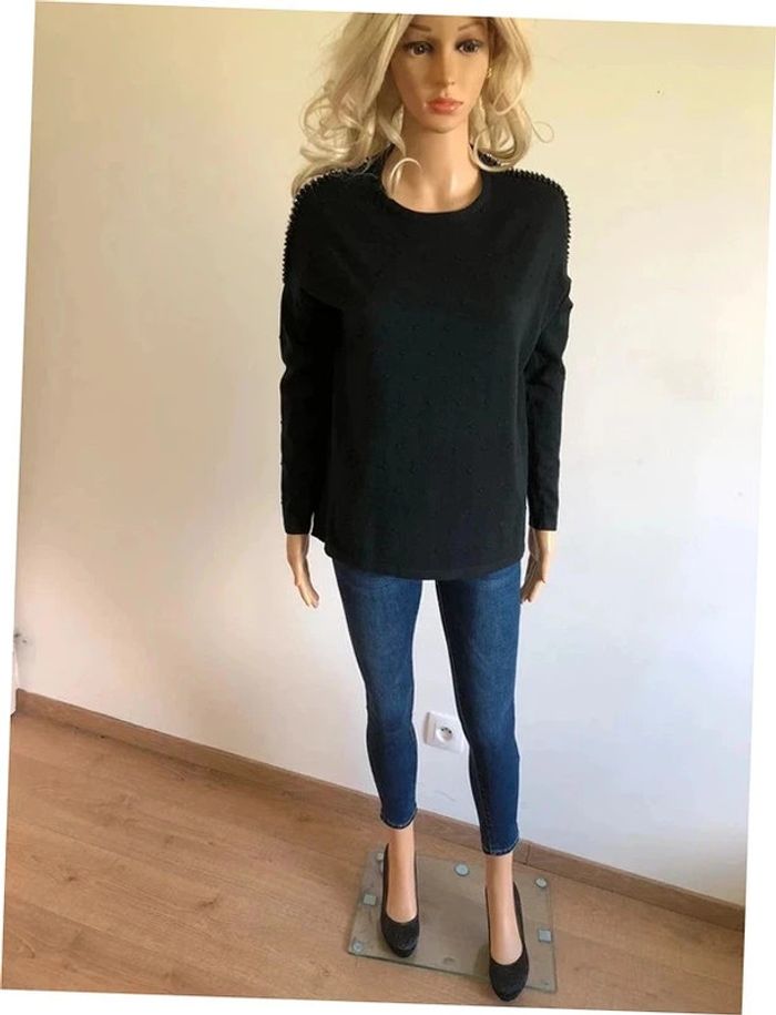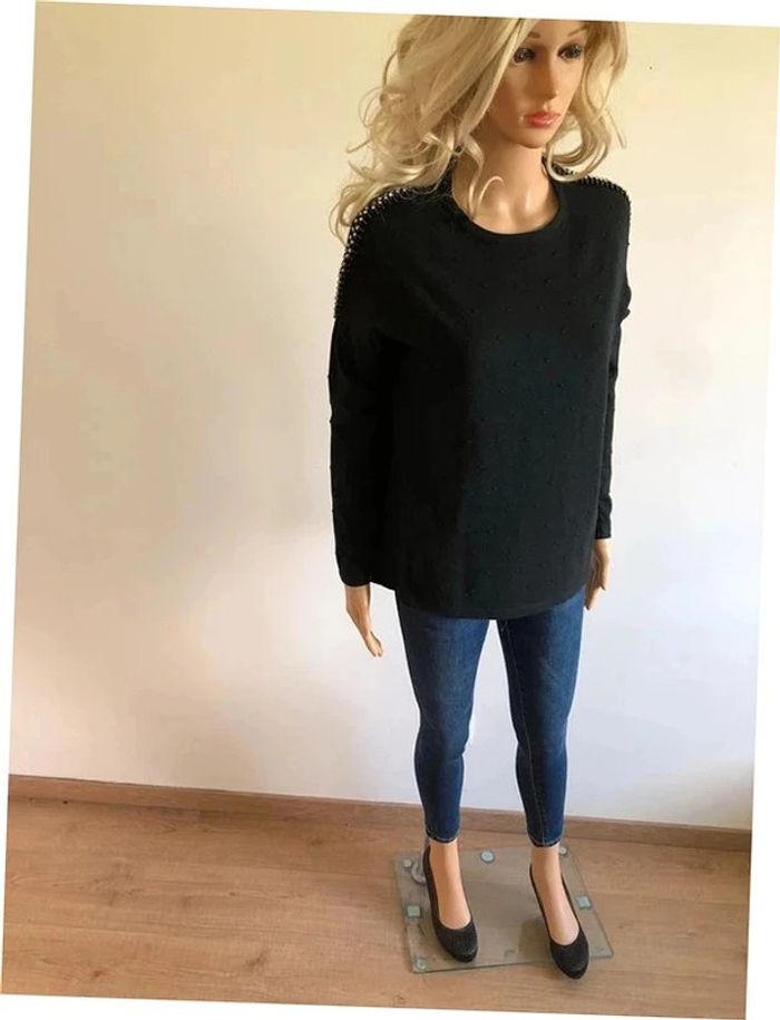 Pull noir neuf à manches longues avec strass taille unique - photo numéro 3