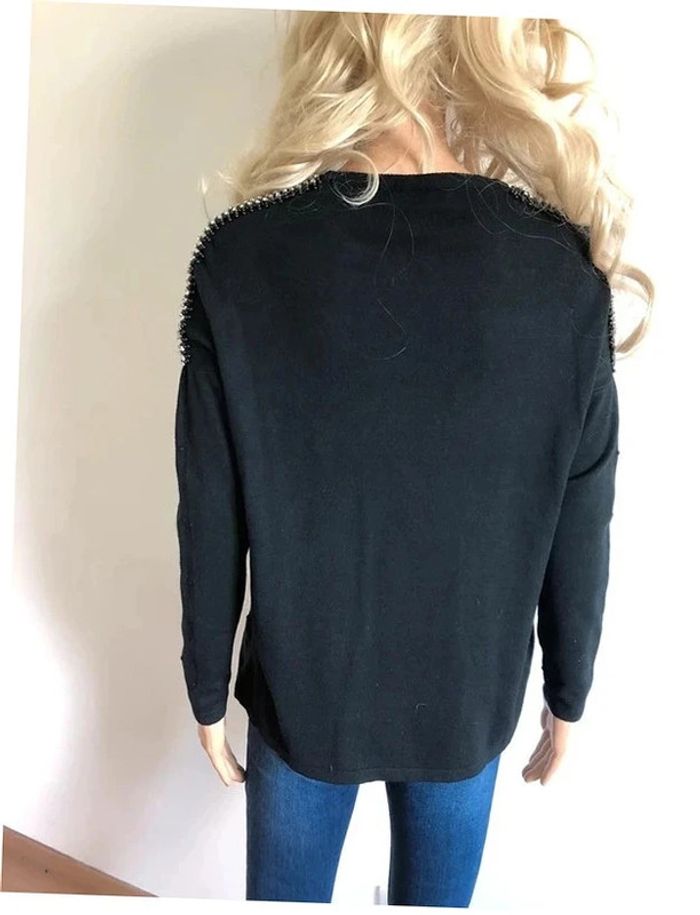 Pull noir neuf à manches longues avec strass taille unique - photo numéro 4