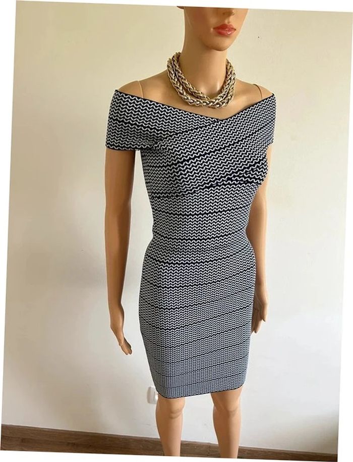 Robe bleue marine et blanche avec épaules dénudées Morgan taille XS jamais portée