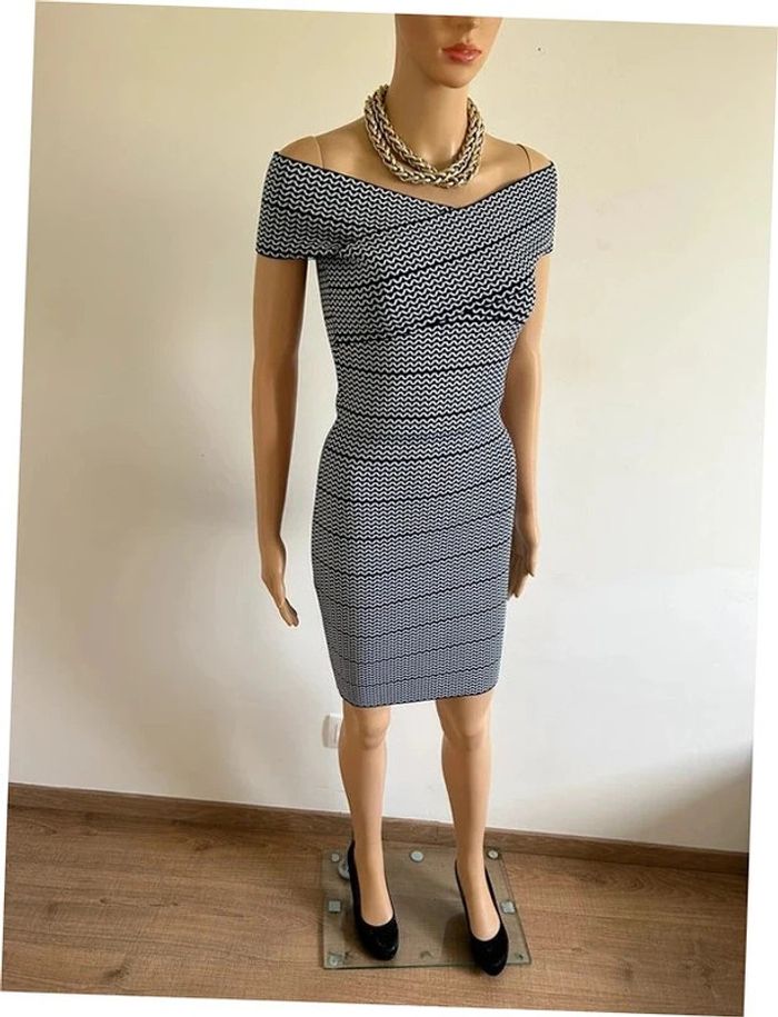 Robe bleue marine et blanche avec épaules dénudées Morgan taille XS jamais portée - photo numéro 14