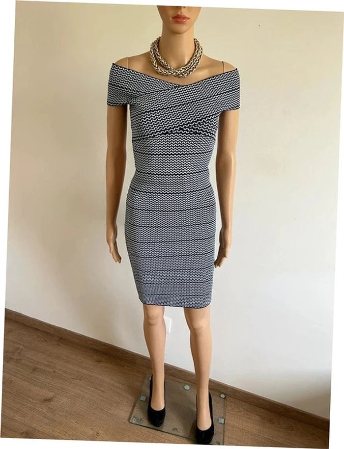Robe bleue marine et blanche avec épaules dénudées Morgan taille XS jamais portée - photo numéro 2