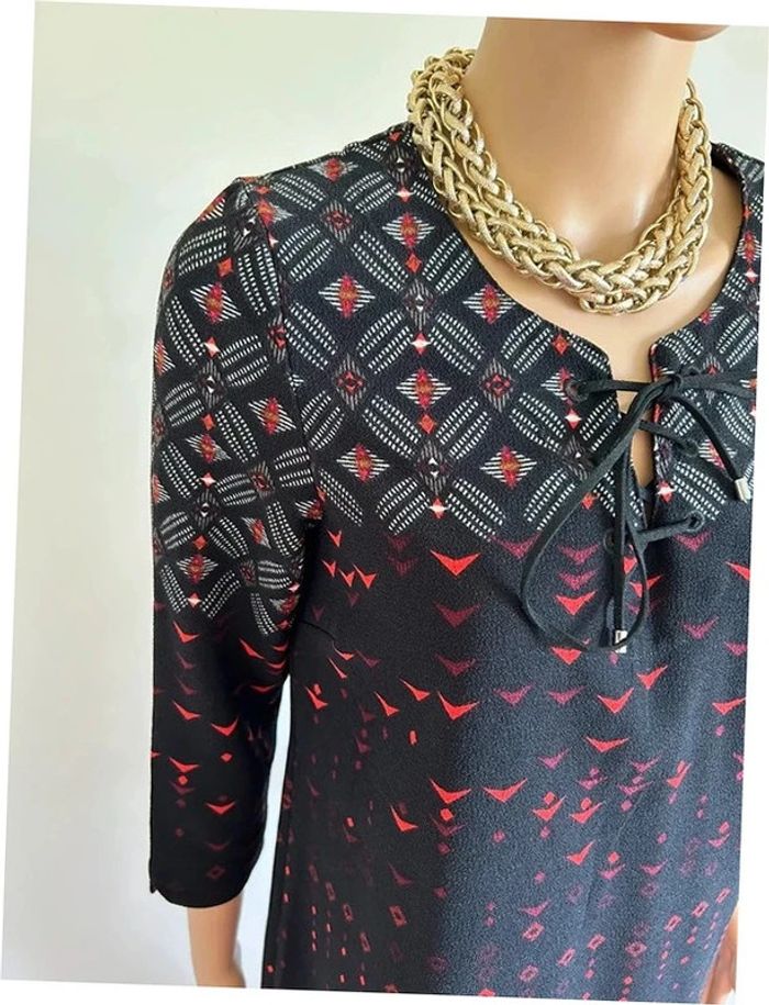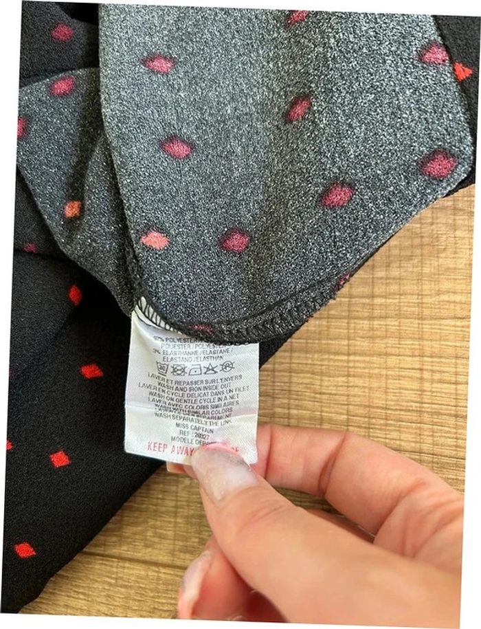 Jolie robe imprimée noire rouge et blanche, avec manches 3/4, de marque Miss Captain. Taille 36. Jamais portée, état neuf. aisselle à aisselle 43 cms épaule à épaule 36 cms taille 43 cms longueur depuis épaule 90 cms 97% polyester et 3% elasthanne Le prix reste négociable dans la limite du raisonnable. Un petit cadeau dans le colis 🌸 (Boîte 35)