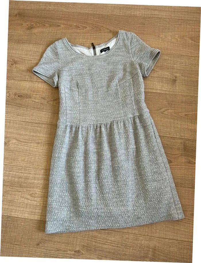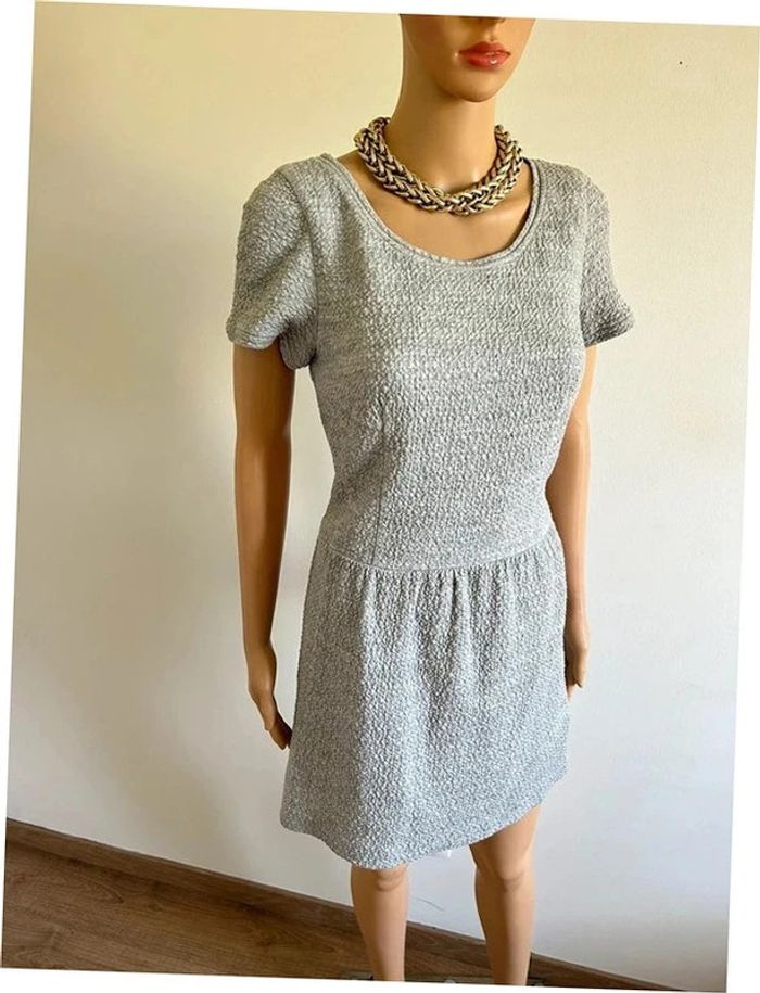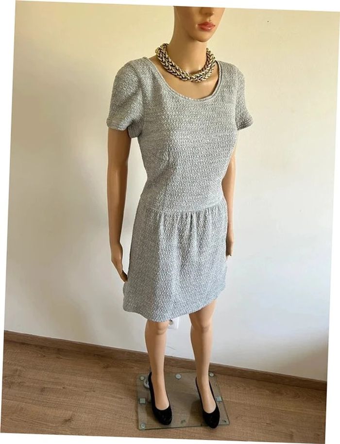 Jolie robe grise à manches courtes, de marque Caroll. Correspond à une taille M (étiquette de taille coupée, voir mesures en dessous). Portée quelques fois, en très bon état. aisselle à aisselle 44 cms épaule à épaule 38 cms taille 40 cms longueur depuis épaule 85 cms 62% acrylique, 22% polyamide et 16% laine Le prix reste négociable dans la limite du raisonnable. Un petit cadeau dans le colis 🌸 (Boîte 28)