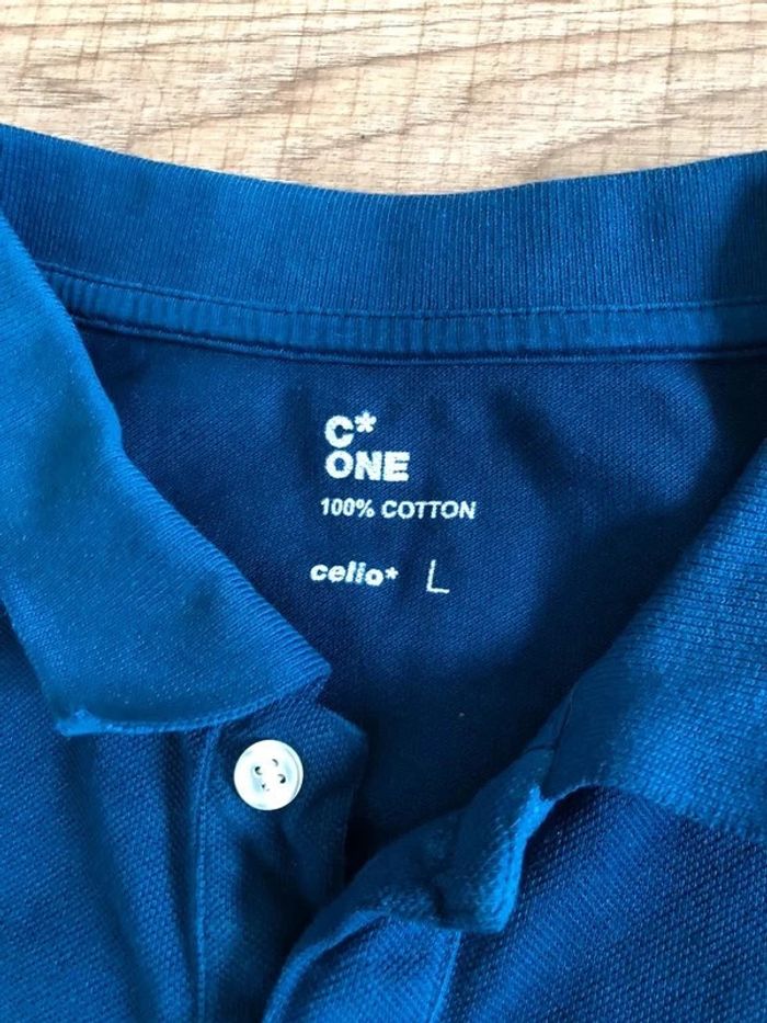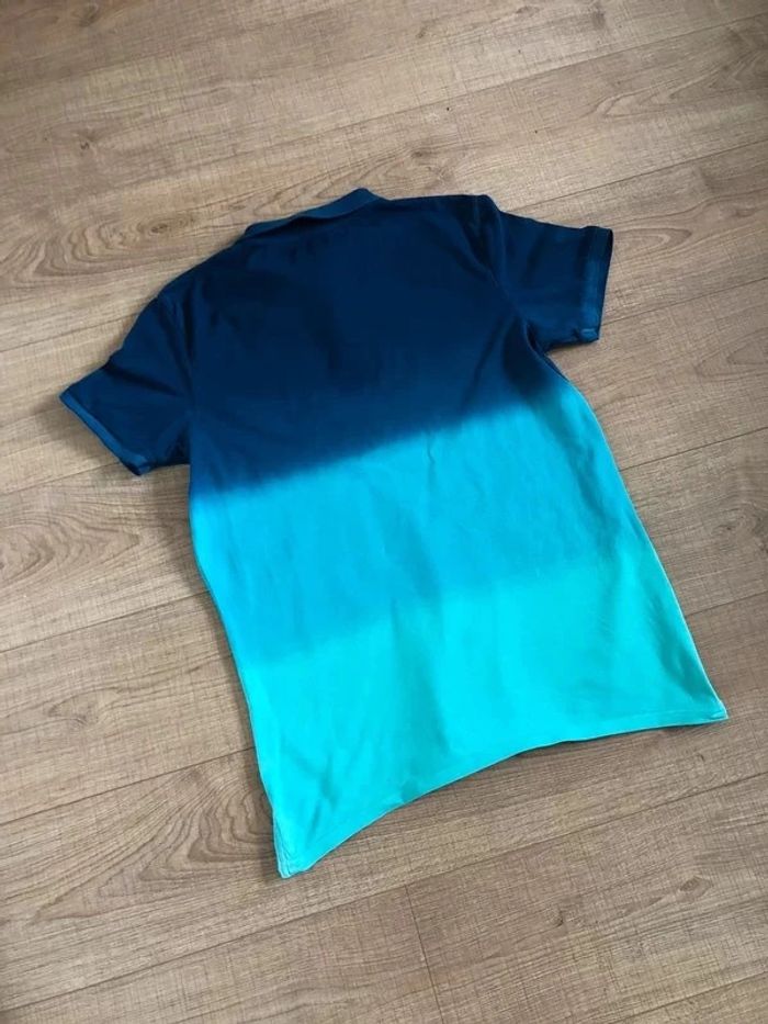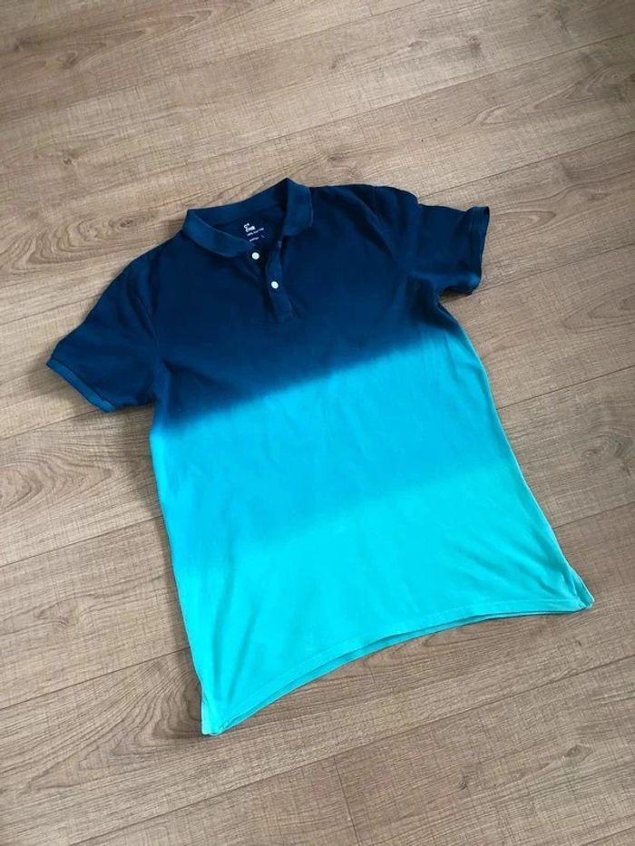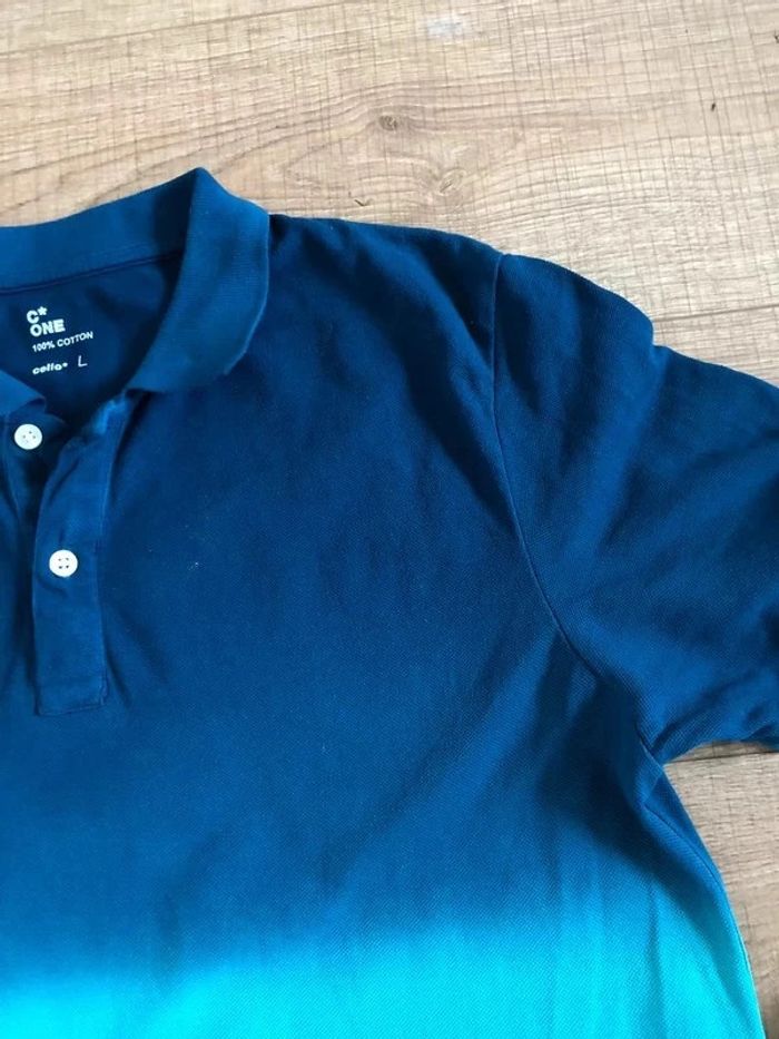 Polo bleu dégradé pour homme à manches courtes, de marque Celio. Taille L. Peu porté en très bon état. aisselle à aisselle 52 cms épaule à épaule 45 cms taille 52 cms longueur depuis épaule 73 cms Étiquette intérieure de composition coupée