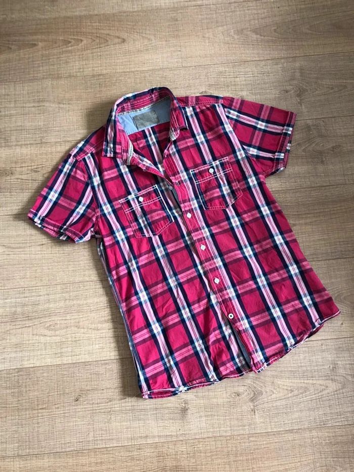 Jolie chemise rose fuschia, noire et blanche pour homme, à manches courtes, de marque Jules. Taille L. Portée quelques fois, en très bon état. Je la revends car elle est trop petite pour moi.
