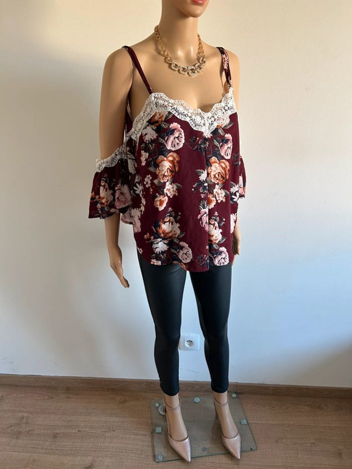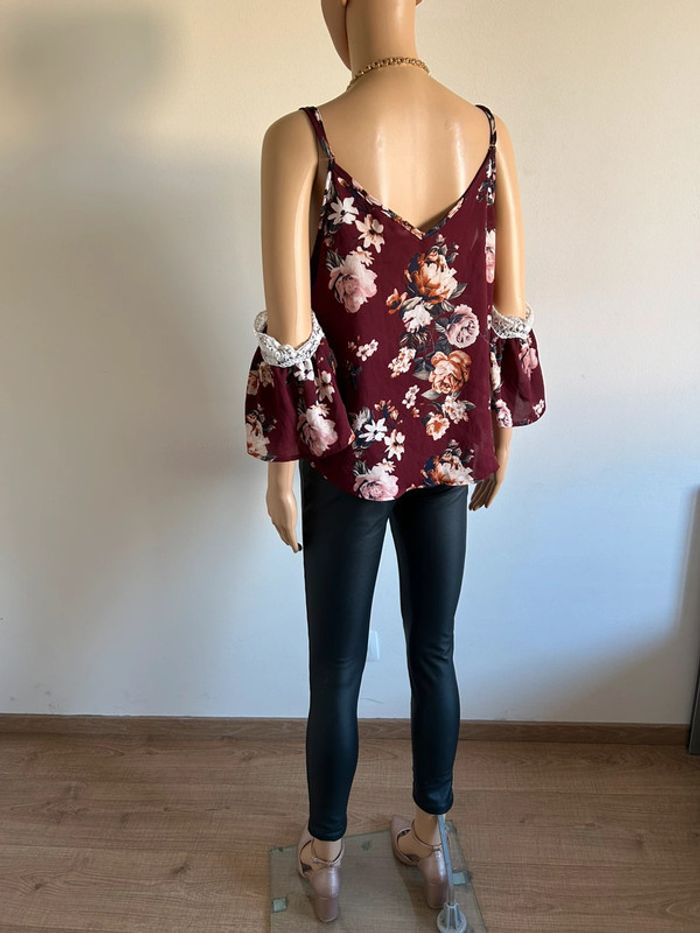 Blouse bordeaux et fleurie avec dentelle Ardene taille L TBE