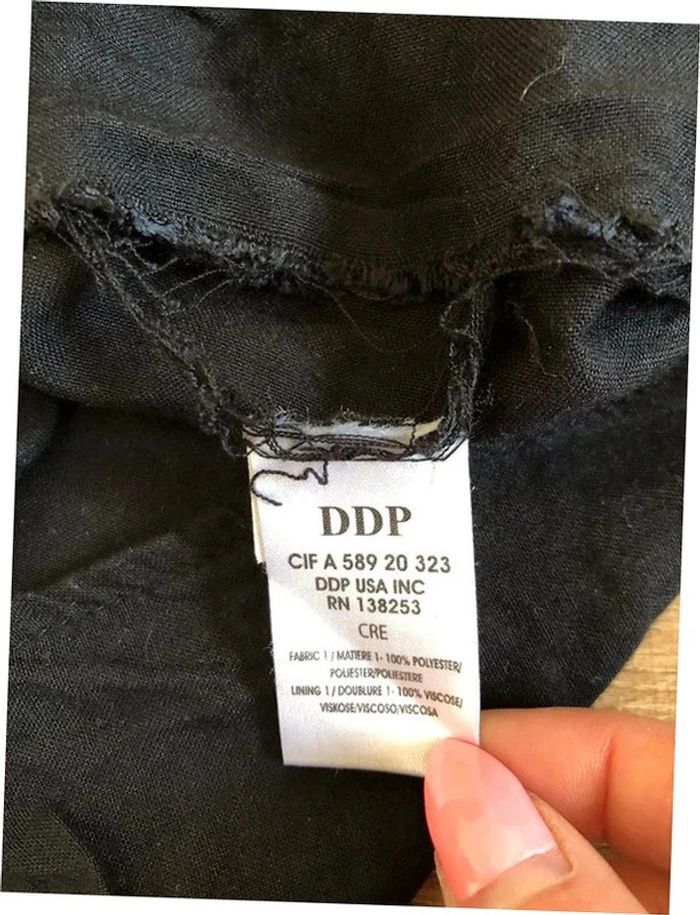Jolie robe noire et blanche, à manches courtes, de marque DDP. Taille S. Portée plusieurs fois mais encore en bon état. Il manque juste les boutons au niveau des manches, mais ne gêne en rien. aisselle à aisselle 40 cms épaule à épaule 37 cms taille 36 cms longueur depuis épaule 88 cms 100% polyester Le prix reste négociable dans la limite du raisonnable. Un petit cadeau dans le colis. (Boîte 36)