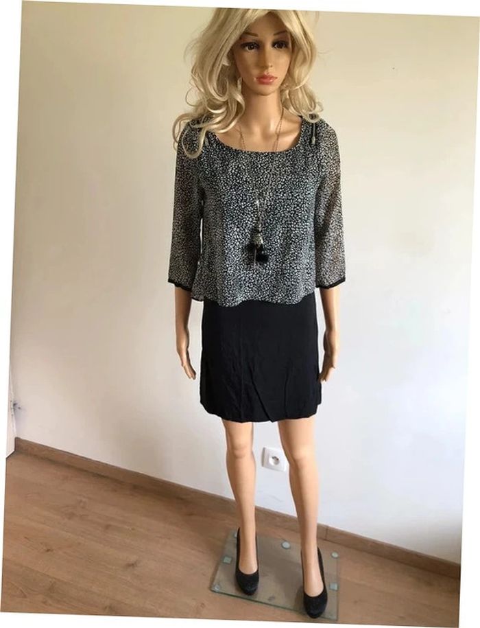 Robe noire et blanche à manches courtes DDP taille S bon état - photo numéro 3