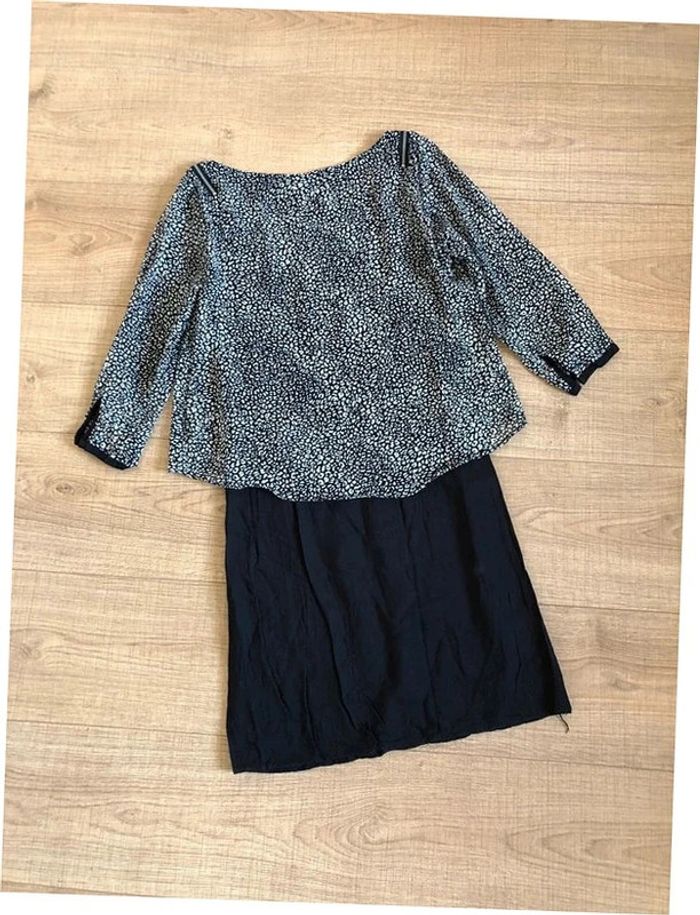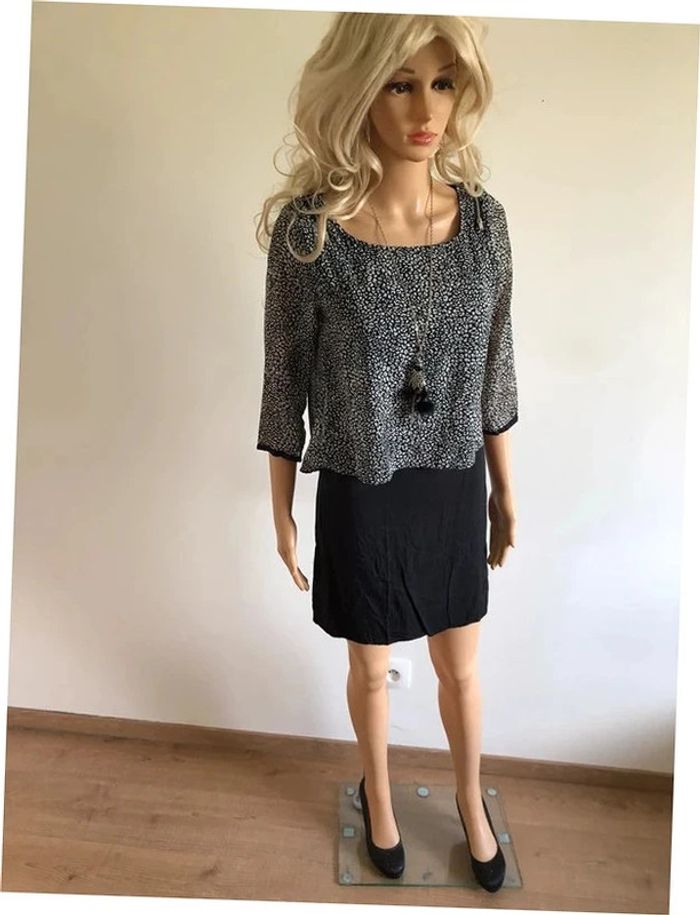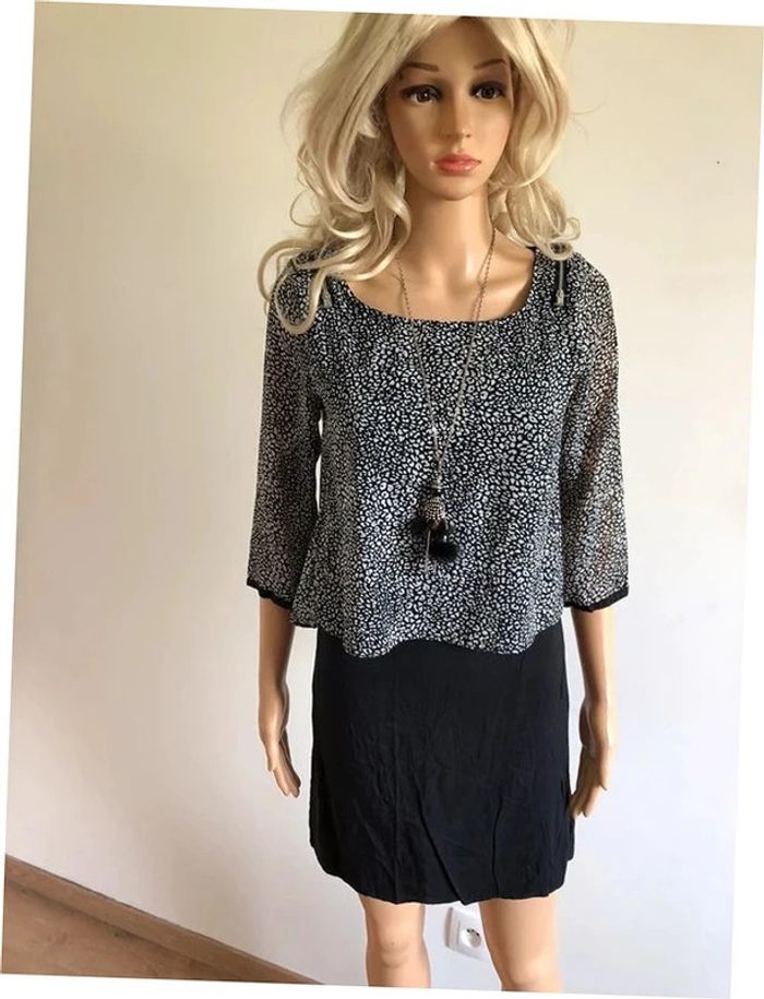 Robe noire et blanche à manches courtes DDP taille S bon état - photo numéro 1