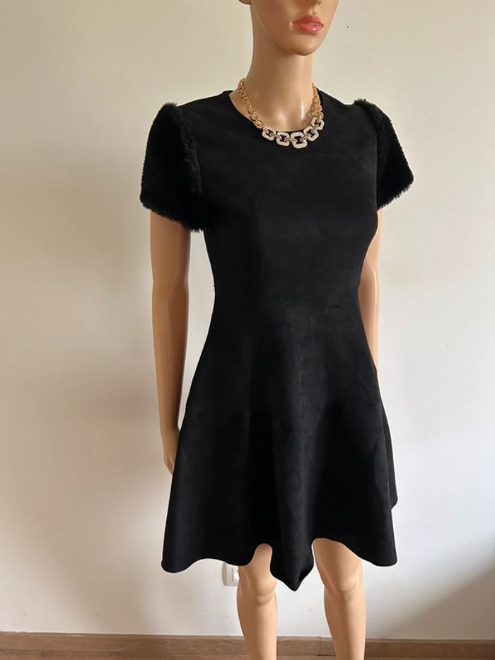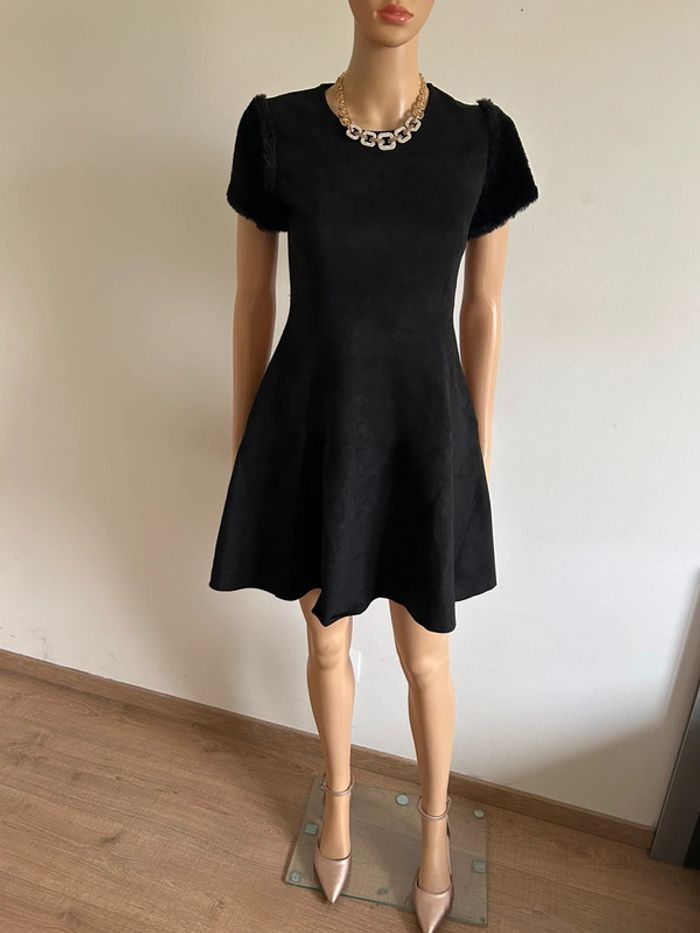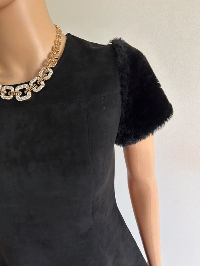 Magnifique robe noire à manches courtes, de marque Molly Bracken. Fausse fourrure au niveau des manches et fermeture dans le dos. Taille XS. Jamais portée, état neuf. aisselle à aisselle 38 cms à 45 cms épaule à épaule 34 cms à 38 cms taille 34 cms à 38 cms longueur depuis épaule 84 cms Le tissu est extensible 95% polyester et 5% elasthanne Le prix reste négociable dans la limite du raisonnable. Un petit cadeau dans le colis 🌸 (Boîte 14)