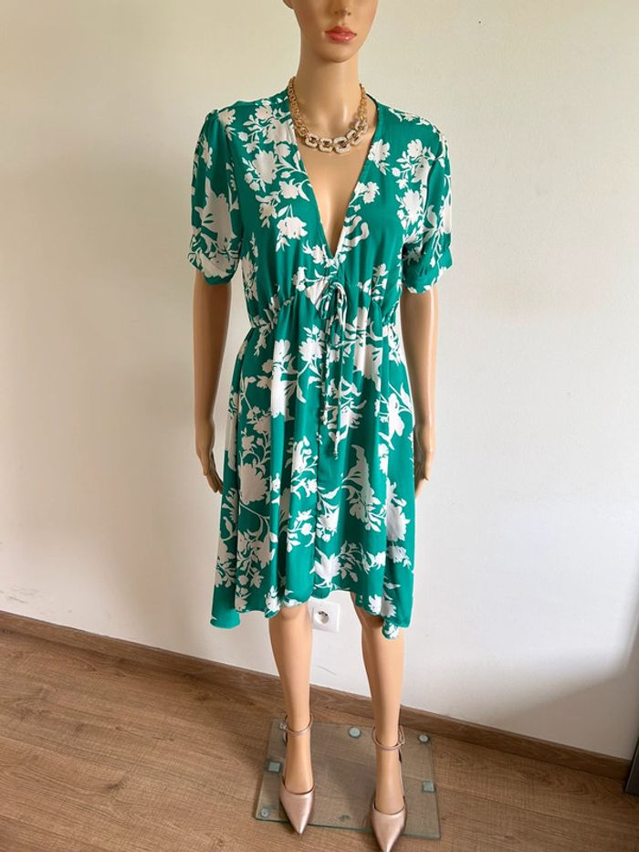 Robe verte et blanche à manches courtes Manoukian taille M jamais portée - photo numéro 1