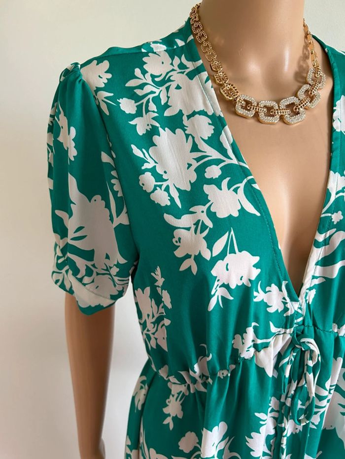 Magnifique robe blanche et verte à manches courtes, de marque Manoukian. Taille M. Jamais portée, état neuf. aisselle à aisselle 45 cms épaule à épaule 40 cms taille 35 cms à 50 cms longueur depuis épaule 92 cms à 100 cms La taille est extensible 100% viscose Le prix reste négociable dans la limite du raisonnable. Un petit cadeau dans le colis 🌸 (Boîte 43)