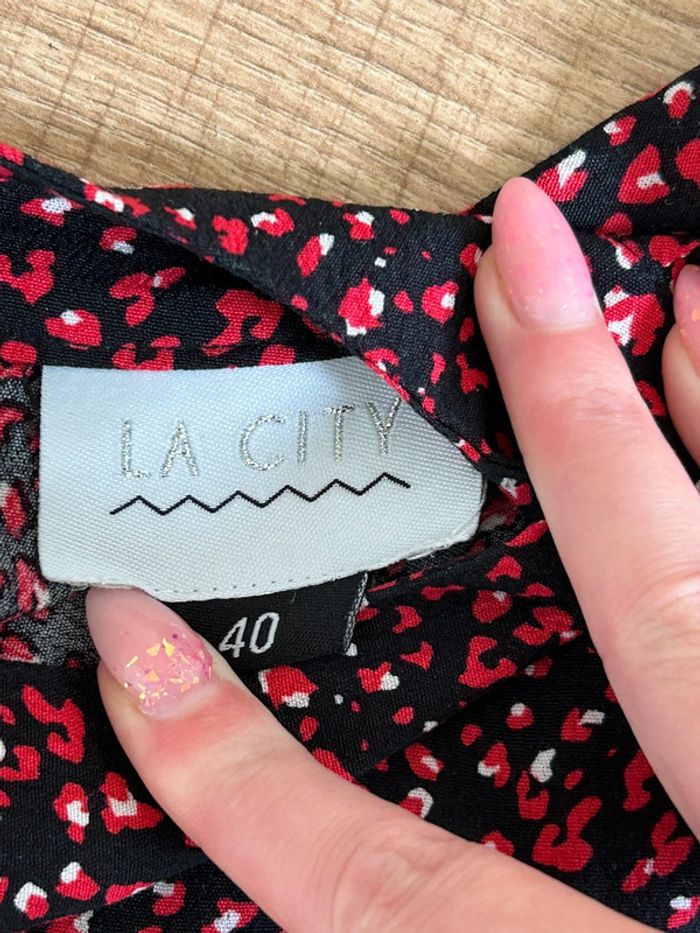 Jolie robe imprimée rouge et noire à manches longues, de marque La City. Fermeture sur le côté. Taille 40. Portée quelques fois, en très bon état. aisselle à aisselle 49 cms épaule à épaule 43 cms longueur manches 63 cms taille 41 cms longueur depuis epaule 88 cms Étiquette intérieure de composition coupée Le prix reste négociable dans la limite du raisonnable. Un petit cadeau dans le colis 🌸 (Boîte 19)