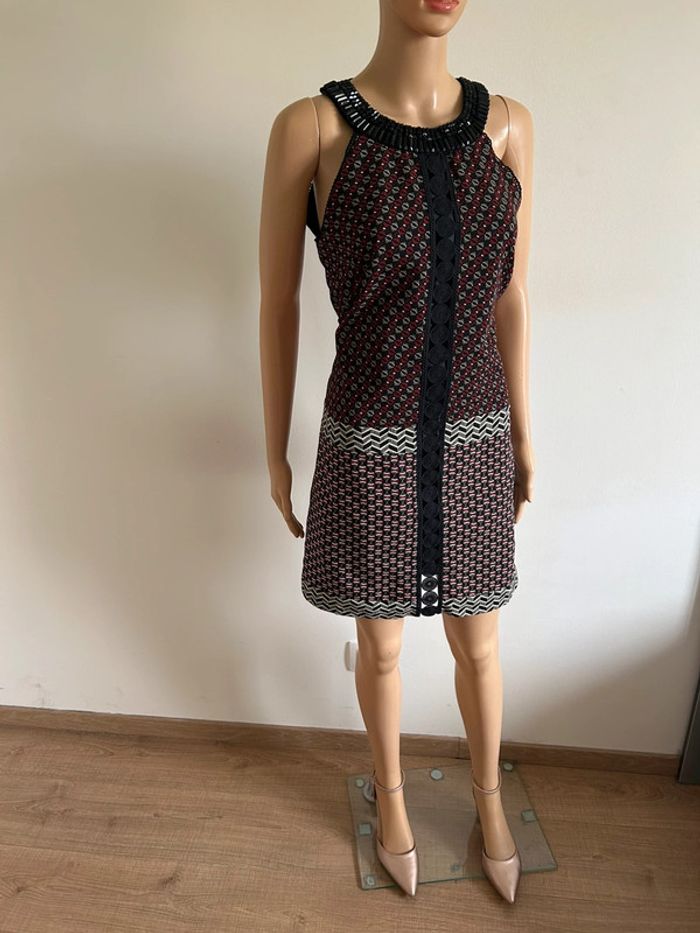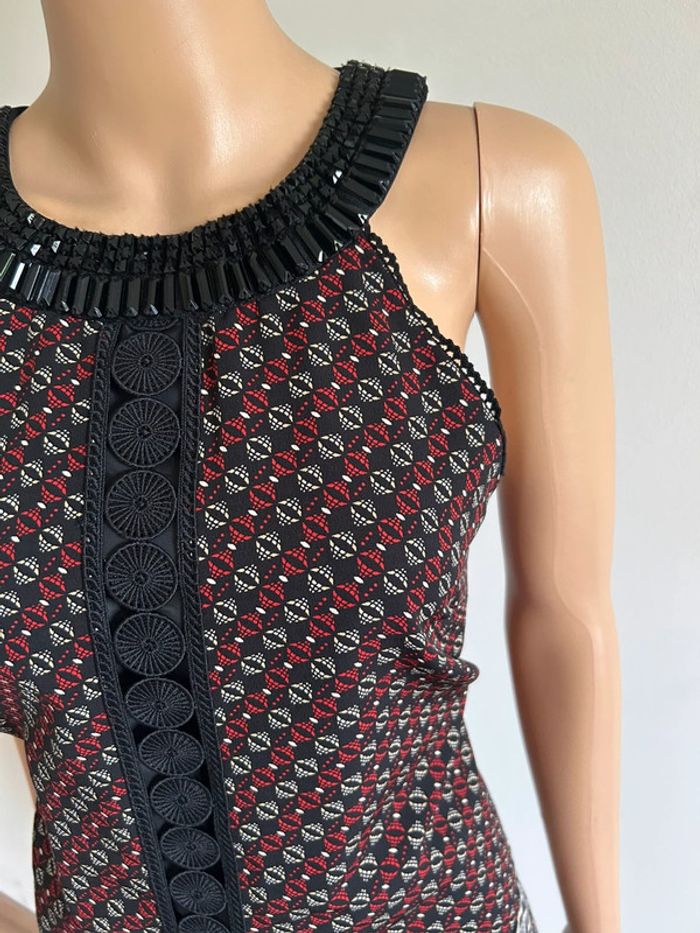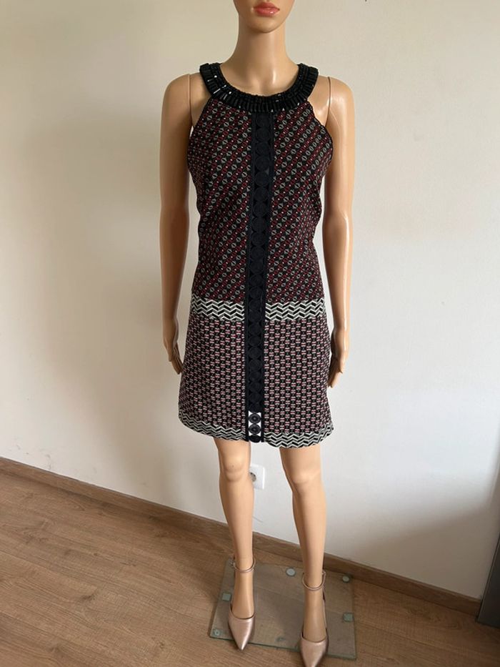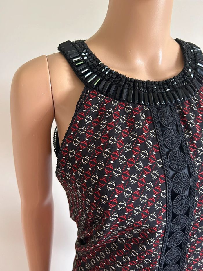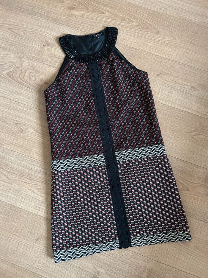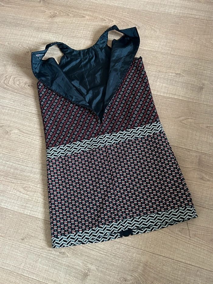 Jolie robe imprimée sans manches, de marque Morgan. Perles noires au niveau de l’encolure. Fermeture dans le dos. Taille 38. Jamais portée, état neuf. aisselle à aisselle 45 cms taille 45 cms longueur depuis épaule 87 cms 100% polyester Le prix reste négociable dans la limite du raisonnable. Un petit cadeau dans le colis 🌸 (Boîte 46)
