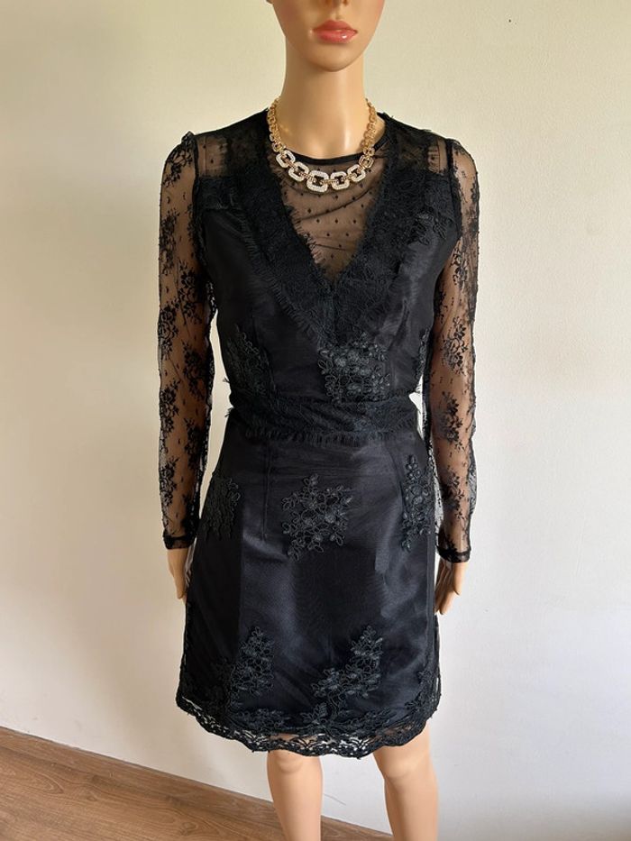 Robe noire neuve avec dentelle et plumetis Morgan taille 36 (valeur 95€) - photo numéro 2