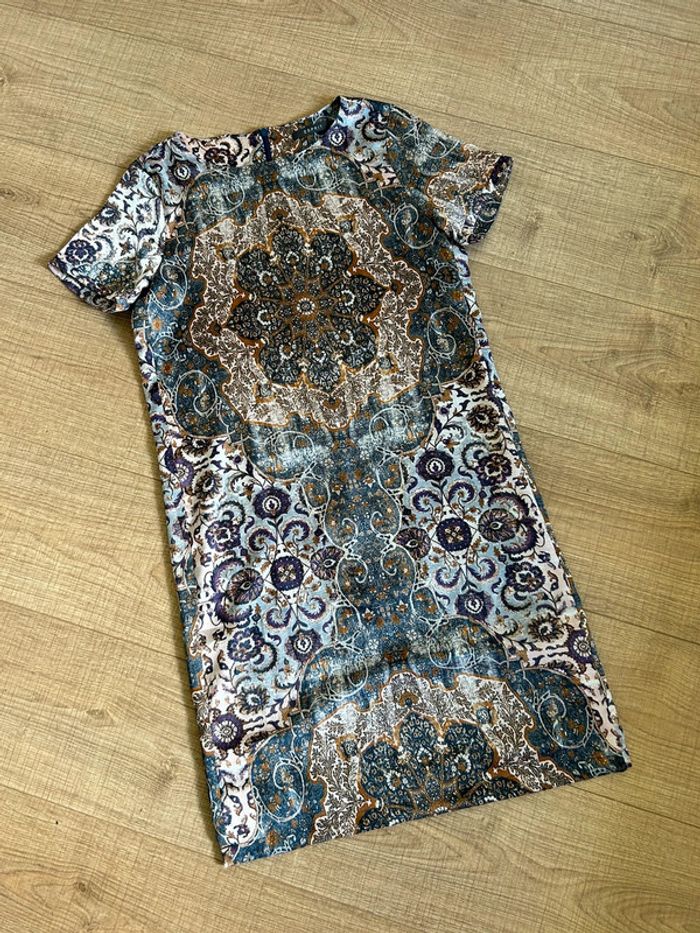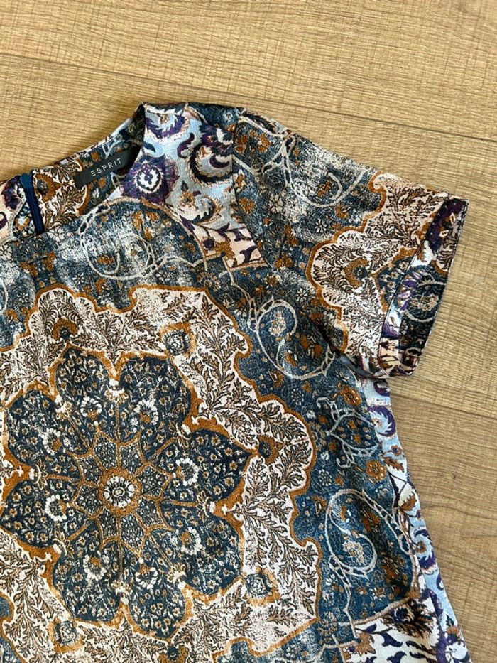 Jolie robe imprimée à manches courtes, de marque Esprit. Fermeture dans le dos. Taille 34. Jamais portée, état neuf. aisselle à aisselle 44 cms épaule à épaule 36 cms taille 41 cms longueur depuis épaule 89 cms 100% polyester Le prix reste négociable dans la limite du raisonnable. Un petit cadeau dans le colis 🌸 (Boîte 14)
