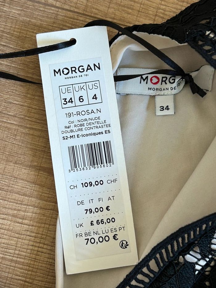 Robe noire et beige neuve en dentelle sans manches Morgan taille 34 (valeur 70€) - photo numéro 14