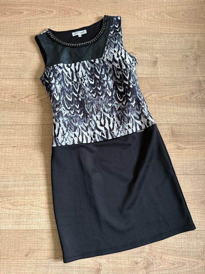 Jolie robe noire et grise sans manches, avec simili cuir, de marque Jus d’Orange. Fermeture sur le côté. Taille 1 qui correspond à du 36. Jamais portée, état neuf. aisselle à aisselle 42 cms taille 38 cms longueur depuis épaule 90 cms Étiquette intérieure de composition coupée Le prix reste négociable dans la limite du raisonnable. Un petit cadeau dans le colis 🌸