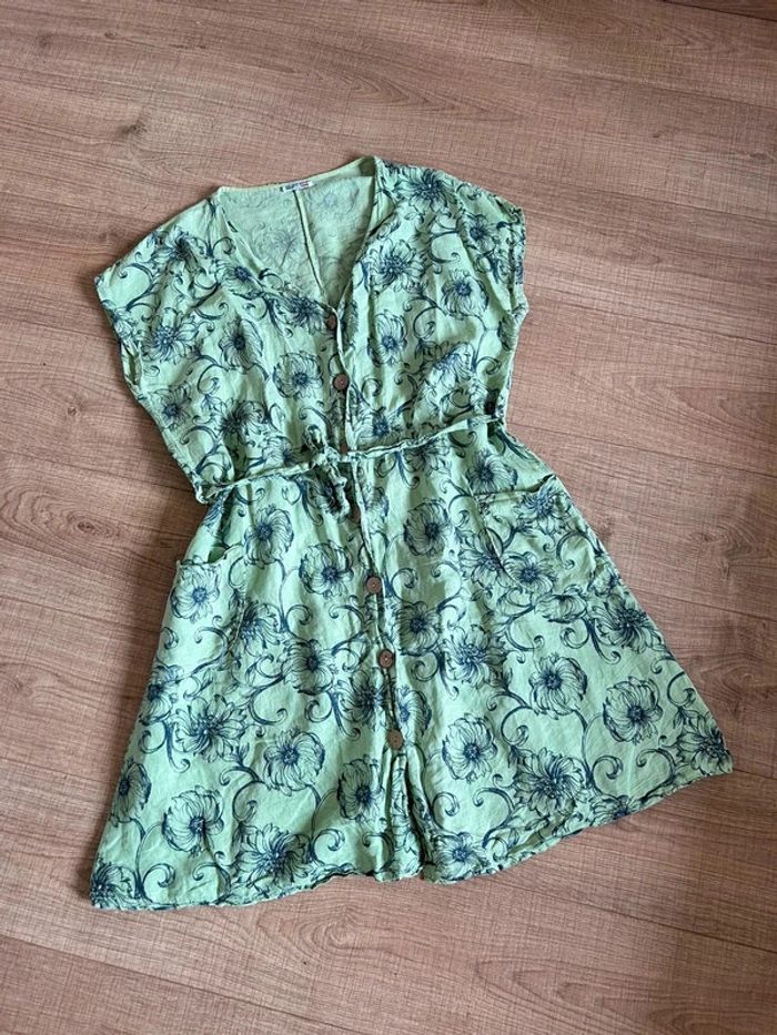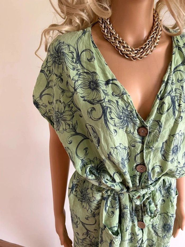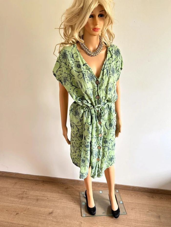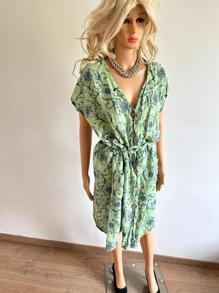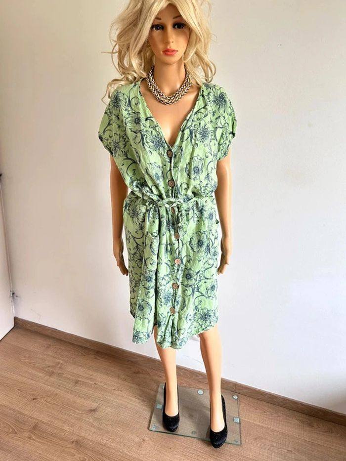 Robe verte en lin à manches courtes Made in Italy taille L bon état - photo numéro 2