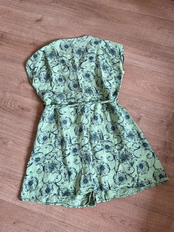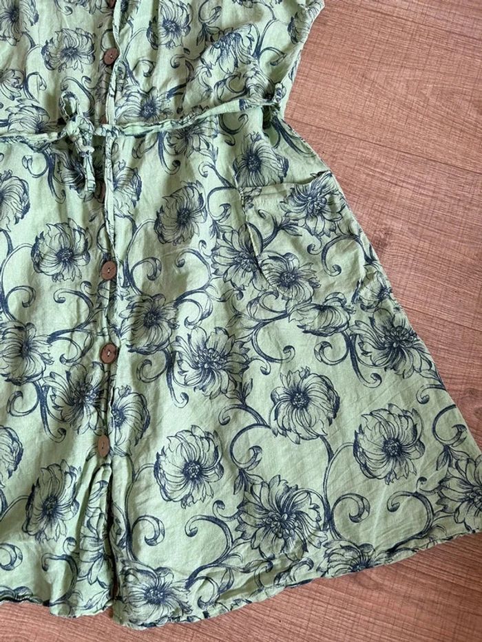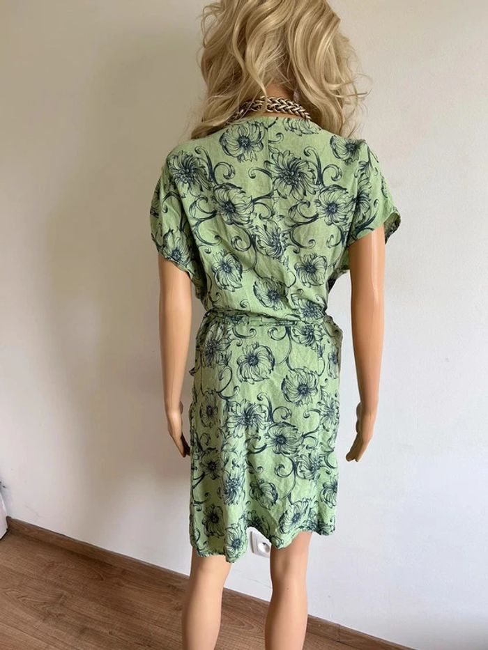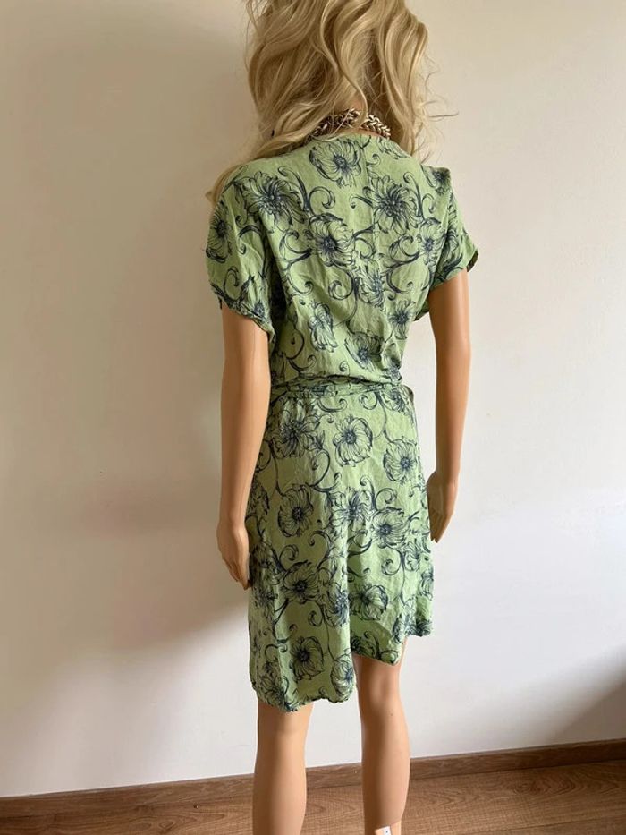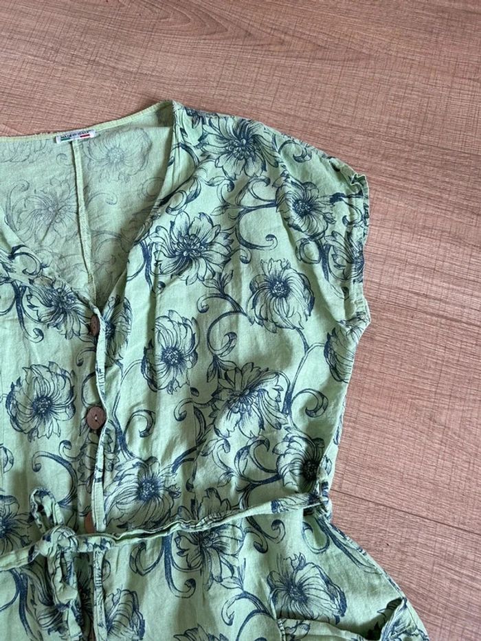 Robe verte en lin à manches courtes Made in Italy taille L bon état - photo numéro 3