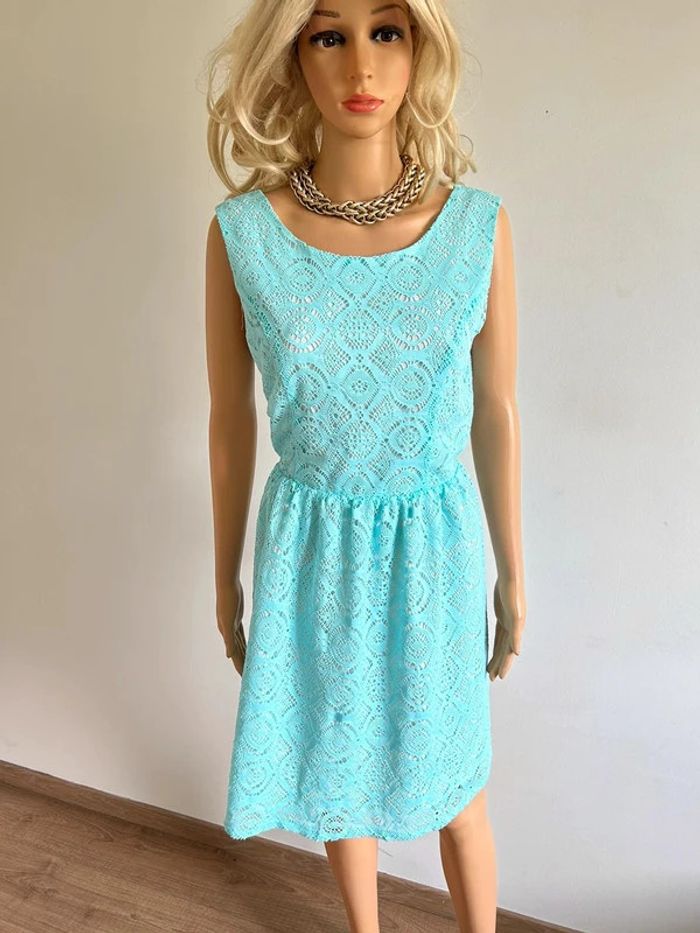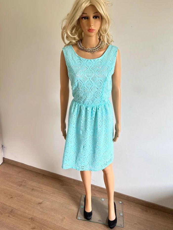 Robe bleue turquoise neuve en dentelle sans manches Molly Bracken taille M - photo numéro 1