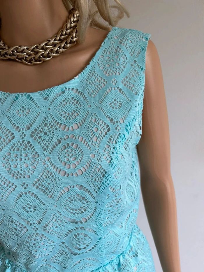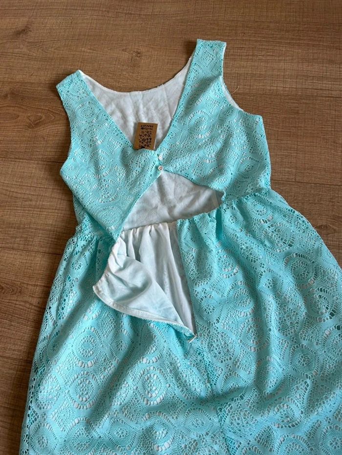 Robe bleue turquoise neuve en dentelle sans manches Molly Bracken taille M - photo numéro 10
