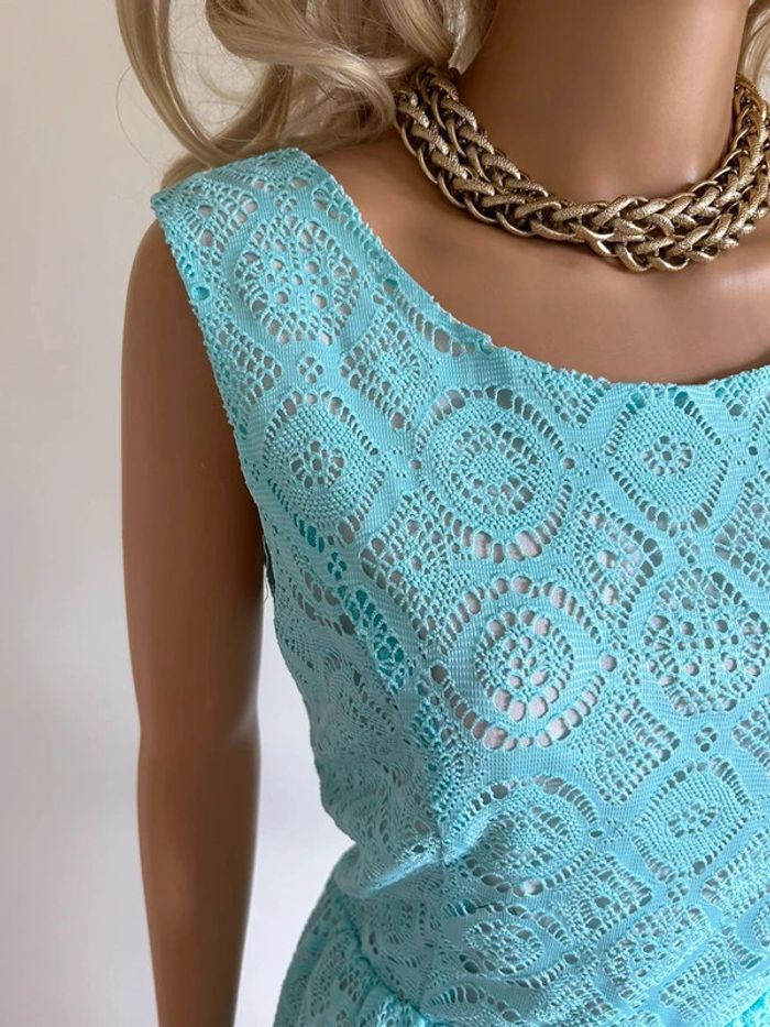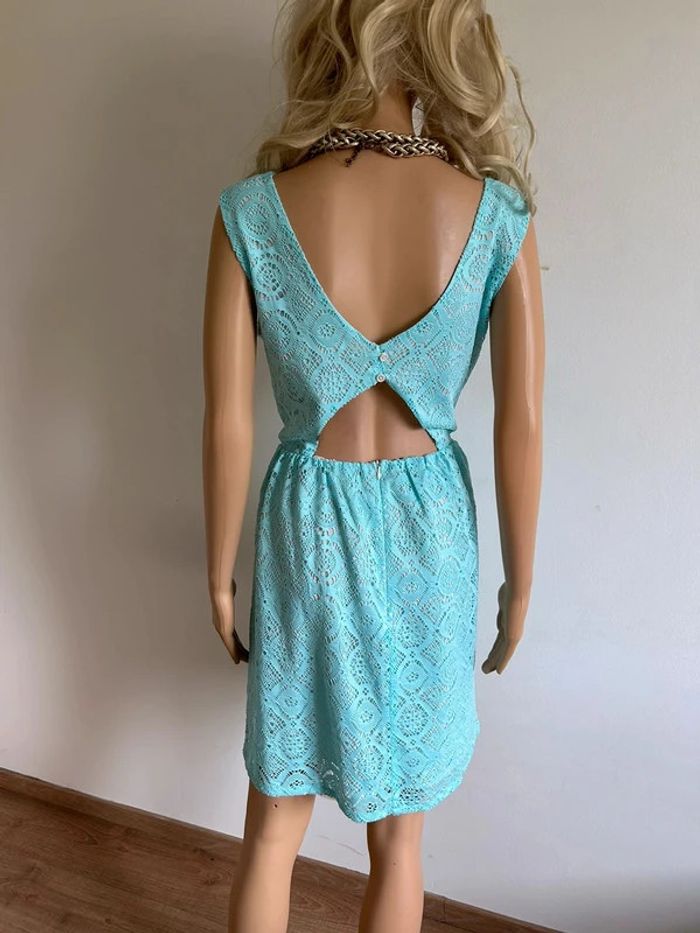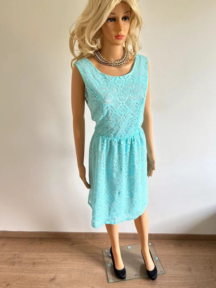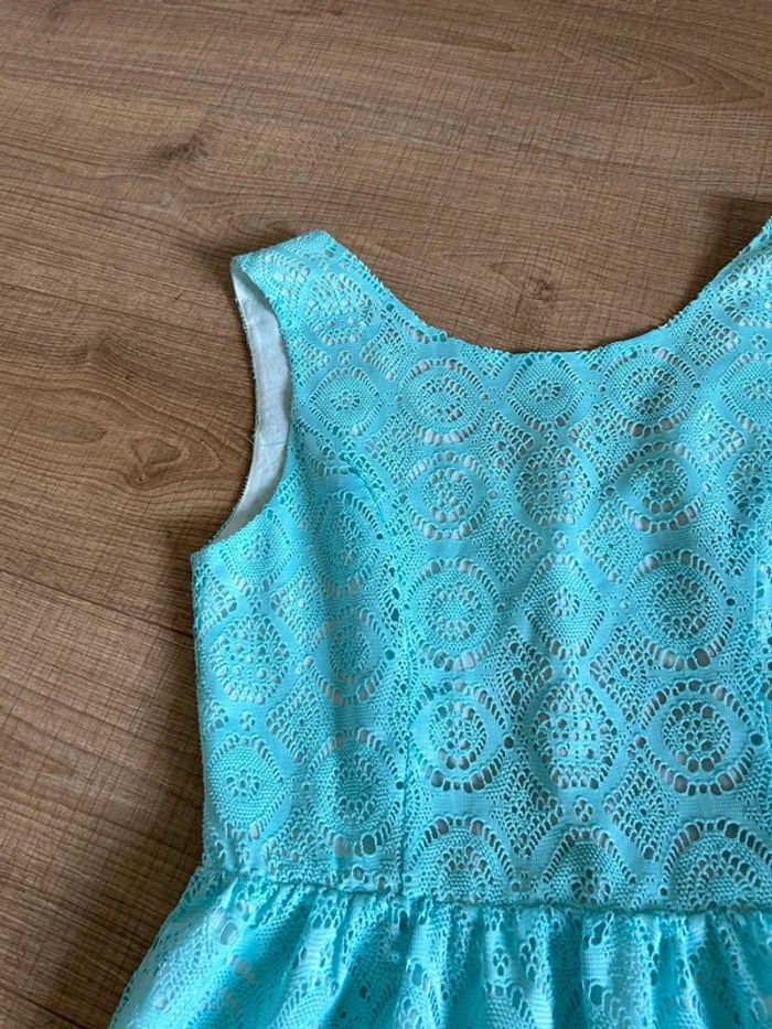 Robe bleue turquoise neuve en dentelle sans manches Molly Bracken taille M - photo numéro 5
