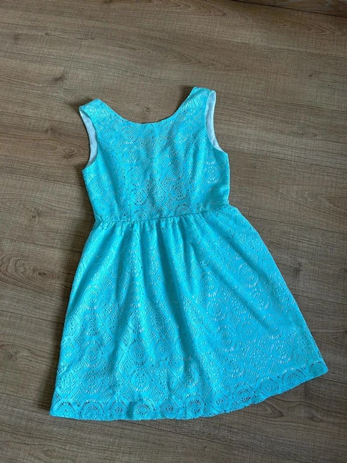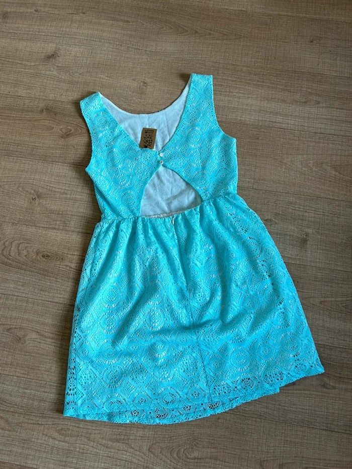 Robe bleue turquoise neuve en dentelle sans manches Molly Bracken taille M - photo numéro 4