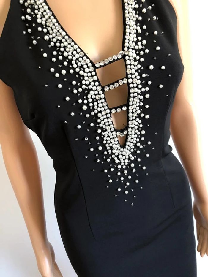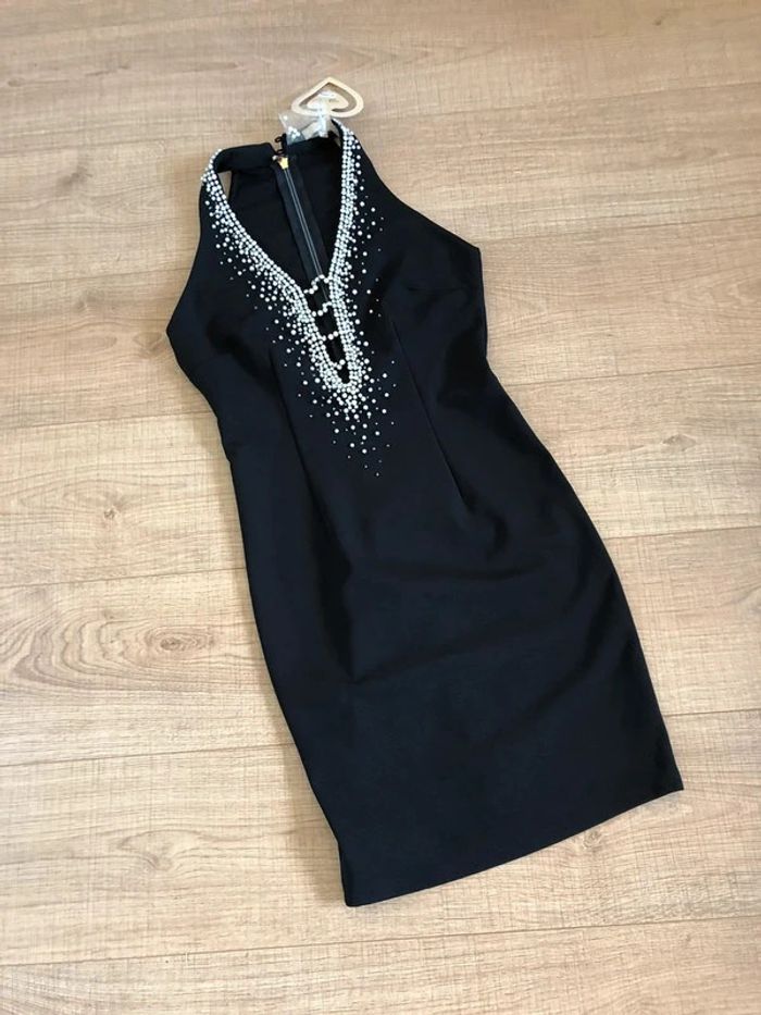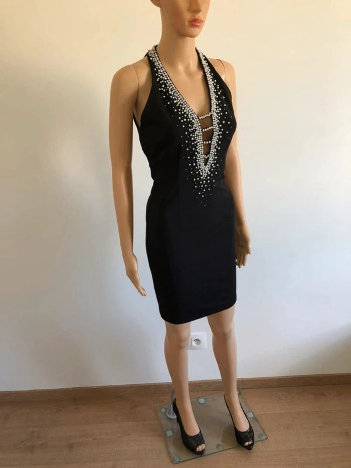 Magnifique robe noire sans manches, avec perles et strass au niveau du cou et du décolleté, de marque Soky & Soka. Fermeture dans le dos. Taille S. Elle est neuve avec étiquette (valeur 40€). aisselle à aisselle 40 cms à 45 cms taille 34 cms à 37 cms longueur depuis épaule 89 cms Le tissu est légèrement extensible 95% polyester et 5% elasthanne Le prix reste négociable dans la limite du raisonnable. Un petit cadeau dans le colis 🌸
