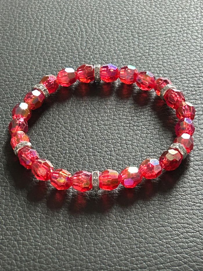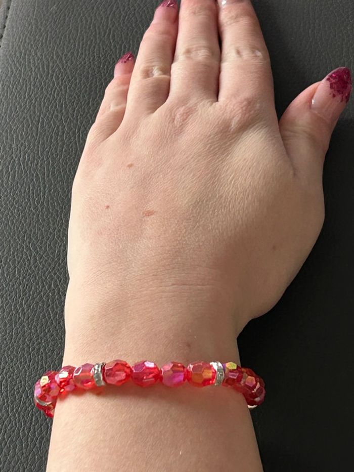 Bracelet rouge et argenté en perles taille unique - photo numéro 1