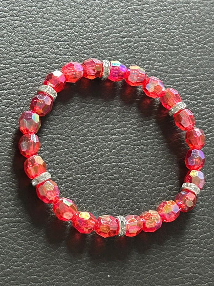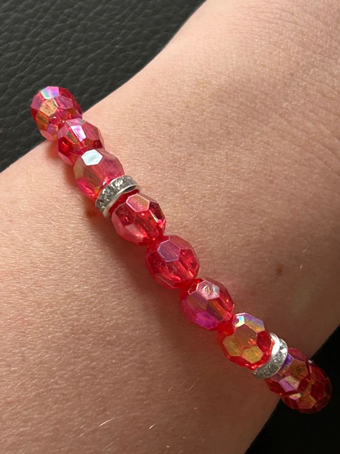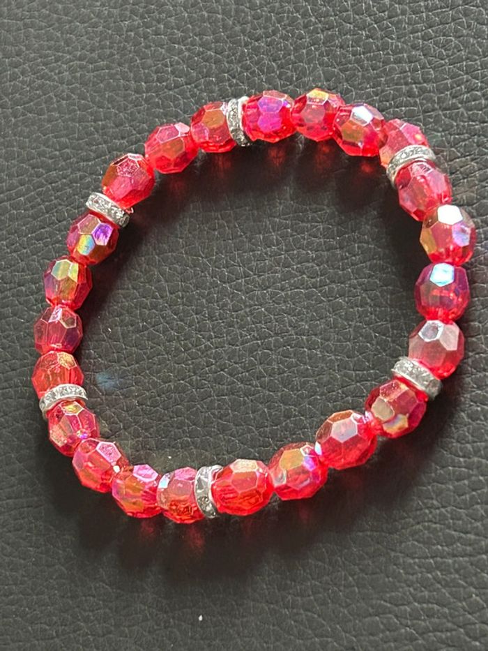 Joli bracelet rouge et argenté en perles. Taille unique. Jamais porté, état neuf.