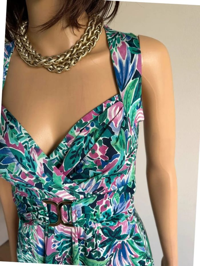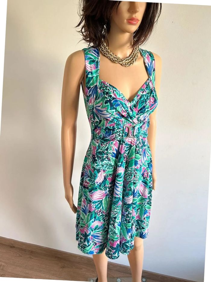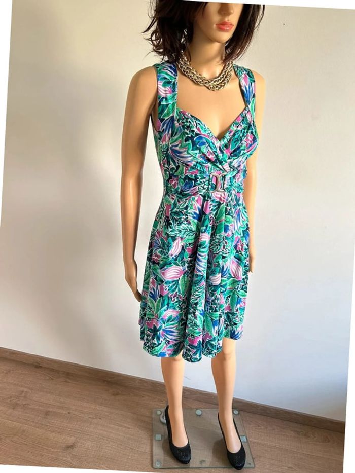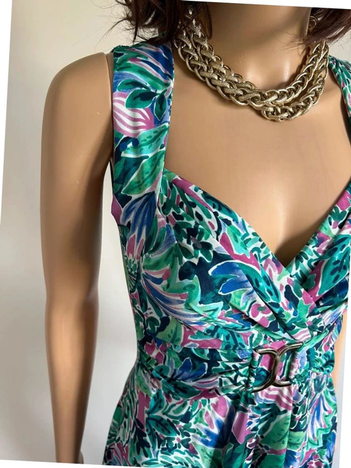 Magnifique robe imprimée sans manches verte et multicolore, de marque Morgan. Taille 36. Elle est neuve avec étiquette. aisselle à aisselle 35 cms à 42 cms taille 32 cms à 38 cms longueur depuis épaule 90 cms Le tissu est extensible 93% polyester et 7% elasthanne Le prix reste négociable dans la limite du raisonnable. Un petit cadeau dans le colis 🌸 (Boîte 39)