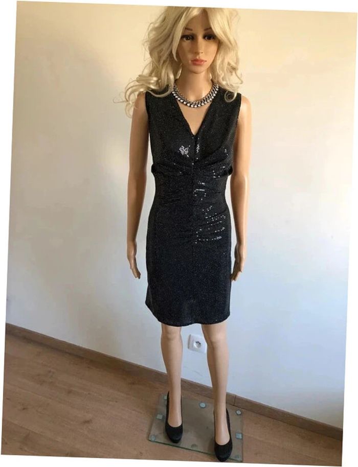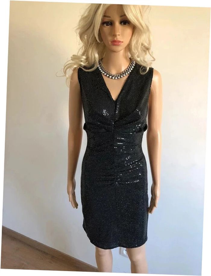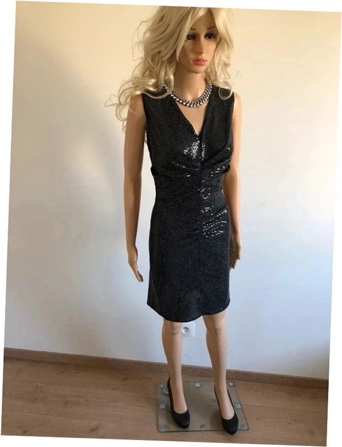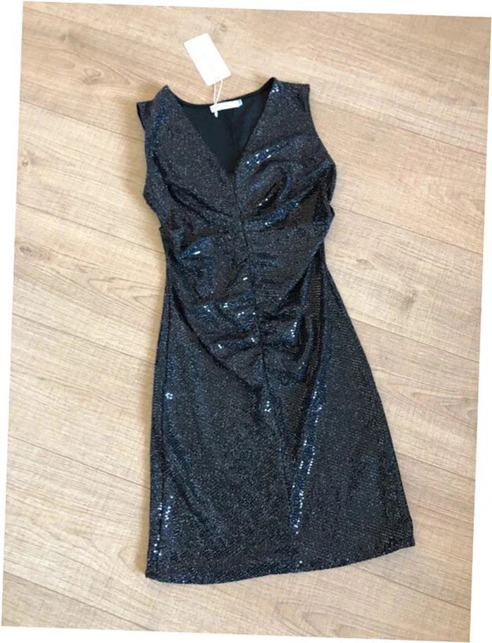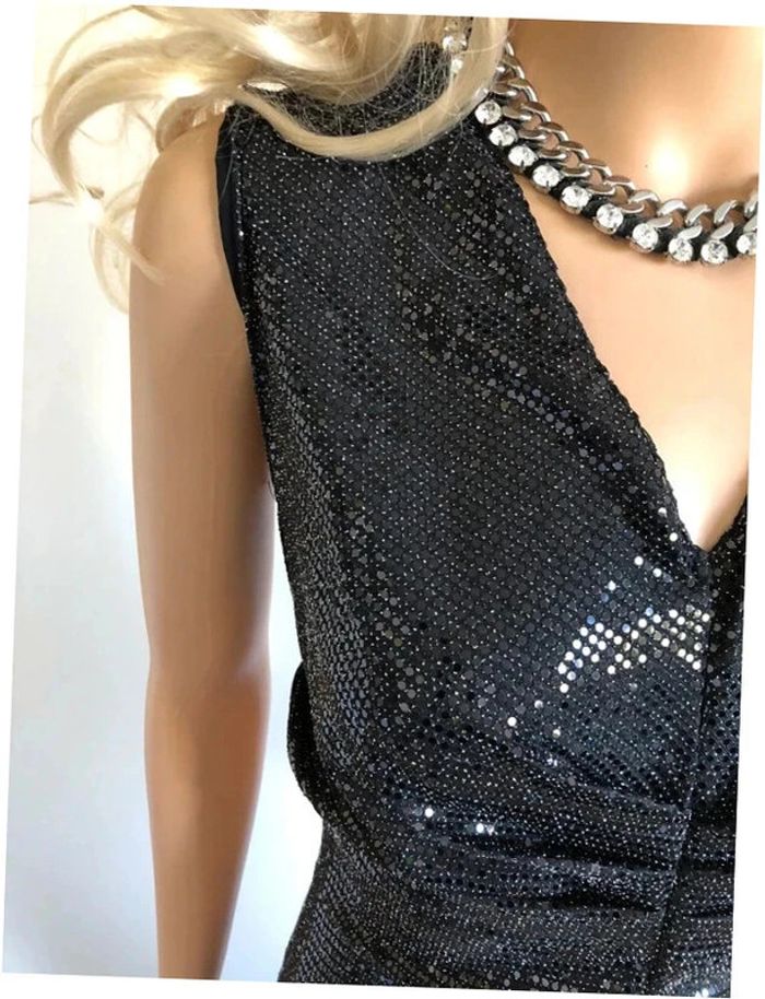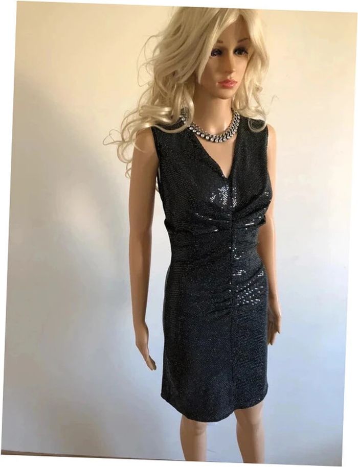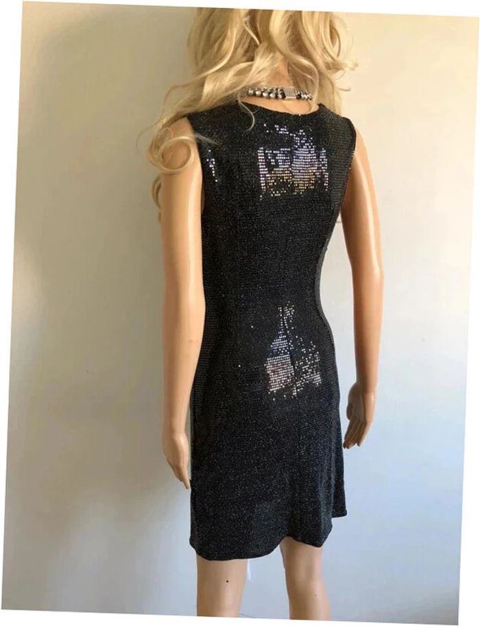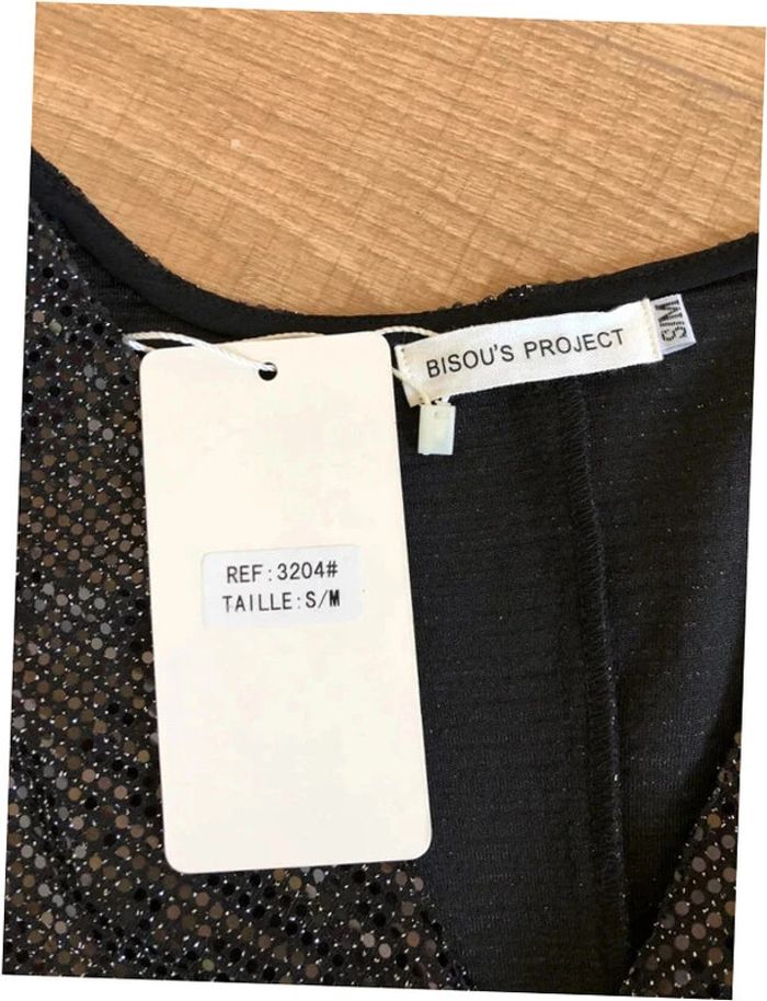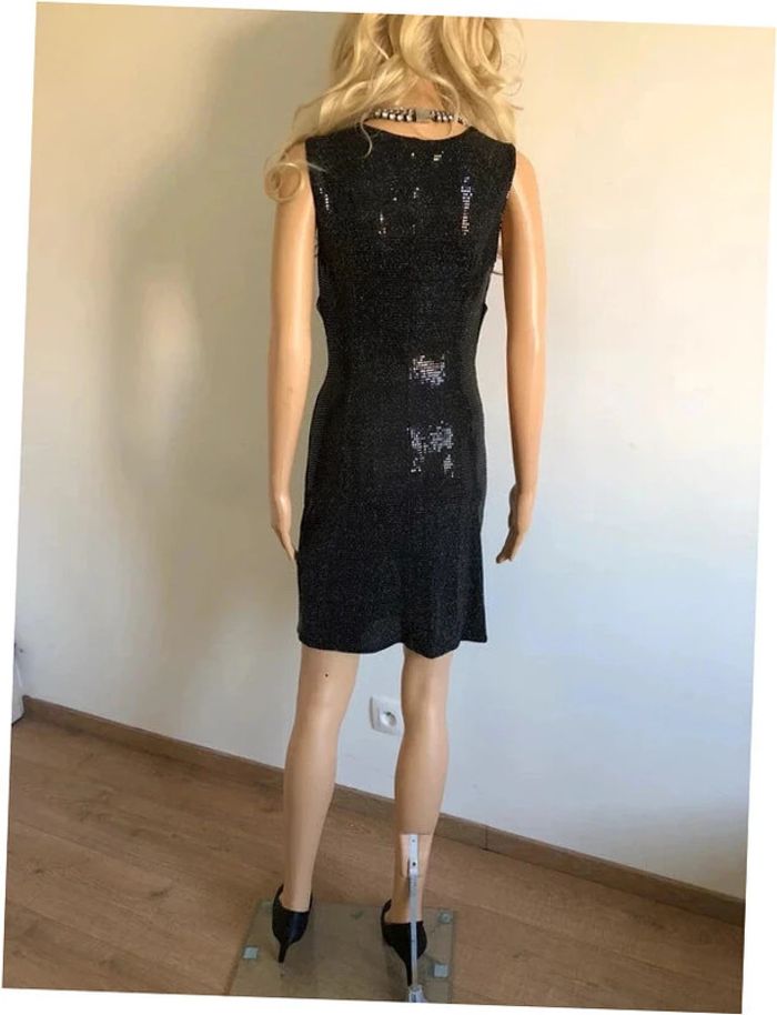 Magnifique robe brillante noire argentée, sans manches, de marque Bisou’s Project. Taille S/M. Elle est neuve avec étiquette. aisselle à aisselle 40 cms a 50 cms taille 34 cms à 40 cms longueur depuis épaule 88 cms Le tissu est extensible 65% polyamide, 25% polyester et 10% fil argenté Le prix reste négociable dans la limite du raisonnable. Un petit cadeau dans le colis.