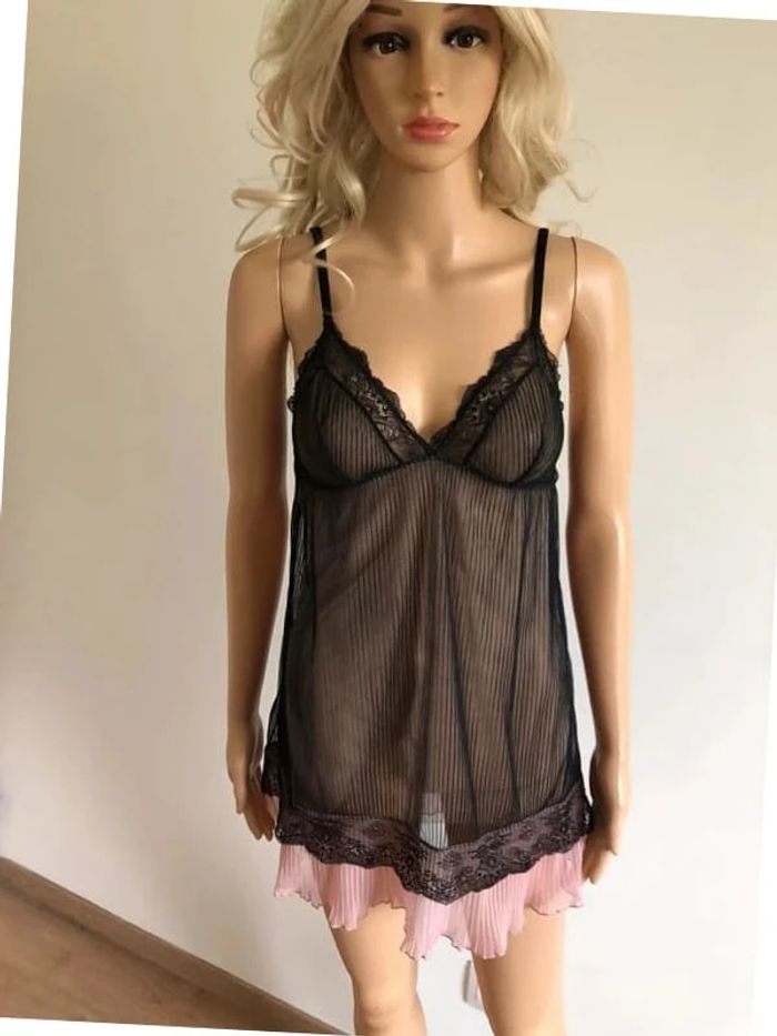Nuisette noire et rose transparente Etam taille 38 jamais portée - photo numéro 4