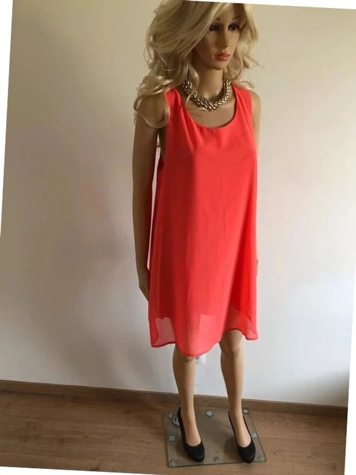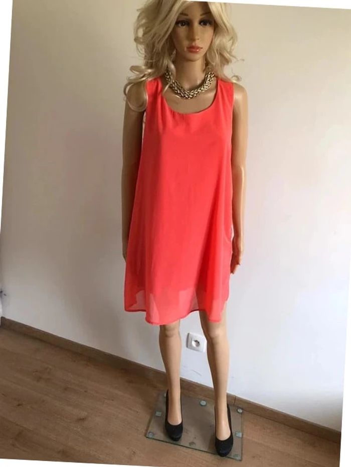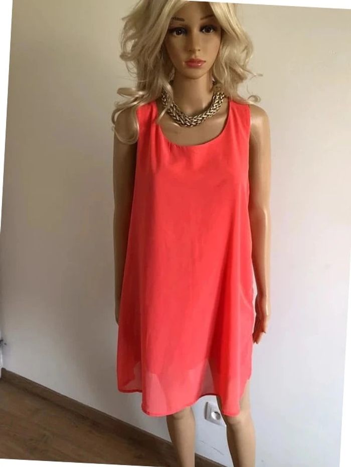 Robe d'été rose corail sans manches taille unique TBE - photo numéro 3