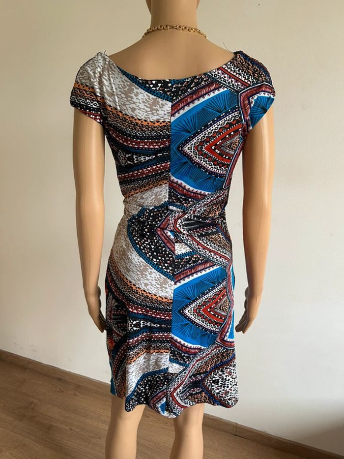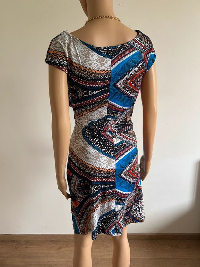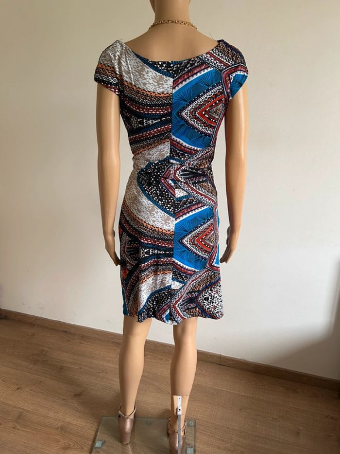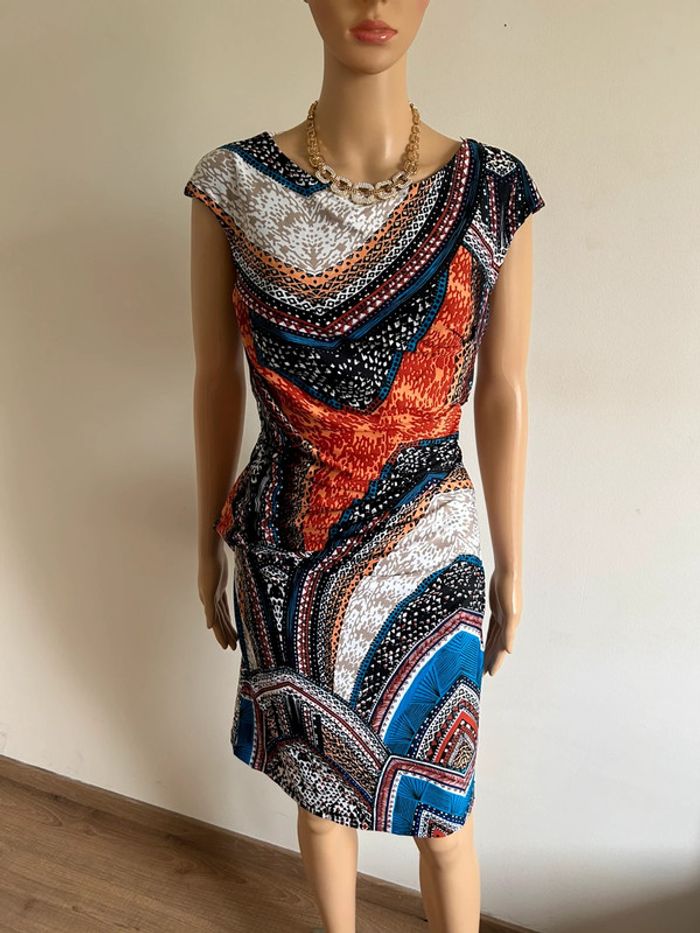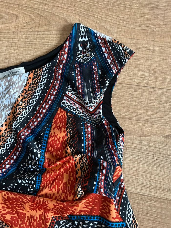Jolie robe multicolore à manches courtes, de marque Jus d’Orange. Taille 3 qui correspond à du 40. Jamais portée, état neuf. aisselle à aisselle 44 cms à 50 cms taille 39 cms à 46 cms longueur depuis épaule 95 cms Le tissu est extensible 95% polyester et 5% spandex Le prix reste négociable dans la limite du raisonnable. Un petit cadeau dans le colis 🌸 (Boîte 20)