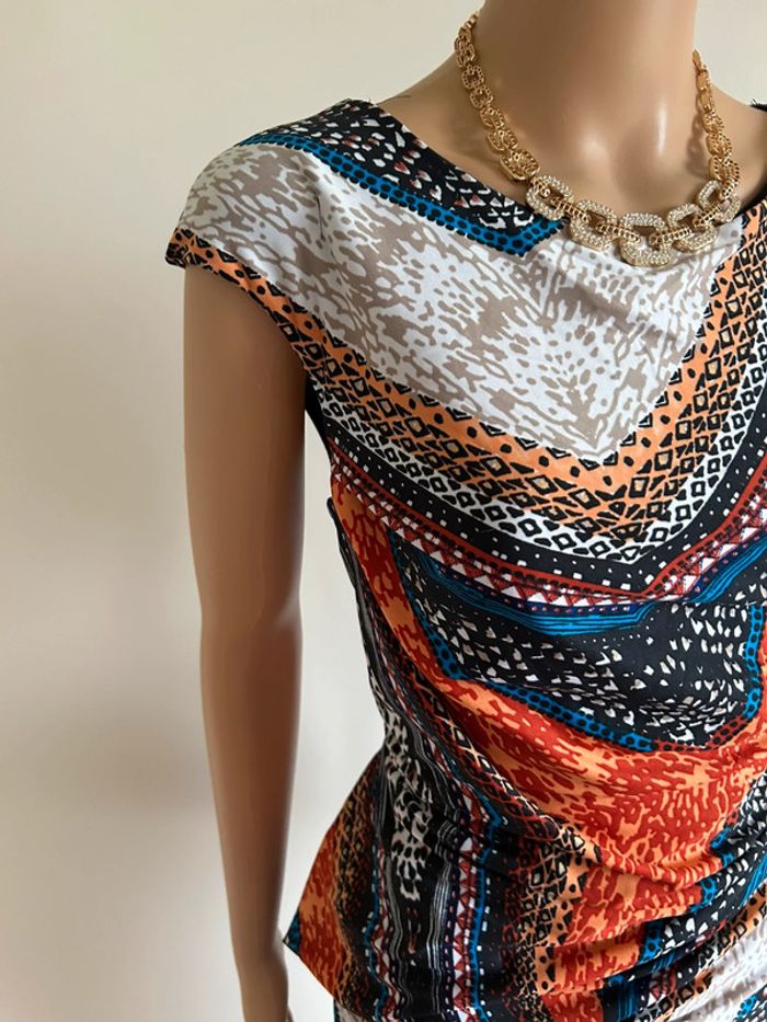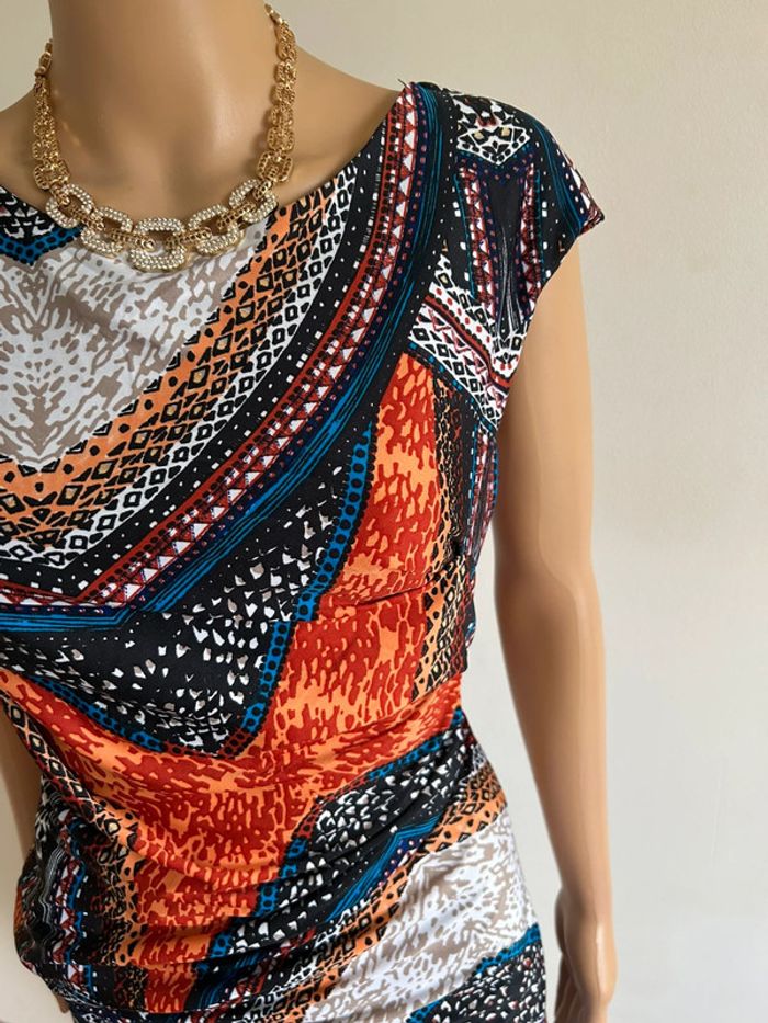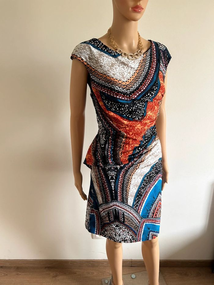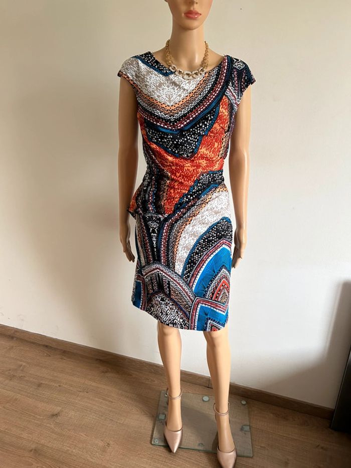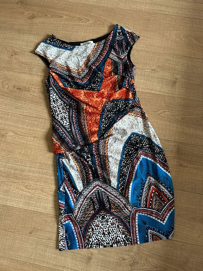 Jolie robe multicolore à manches courtes, de marque Jus d’Orange. Taille 3 qui correspond à du 40. Jamais portée, état neuf. aisselle à aisselle 44 cms à 50 cms taille 39 cms à 46 cms longueur depuis épaule 95 cms Le tissu est extensible 95% polyester et 5% spandex Le prix reste négociable dans la limite du raisonnable. Un petit cadeau dans le colis 🌸 (Boîte 20)