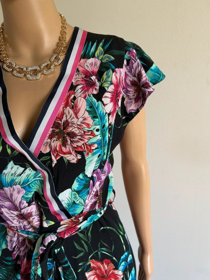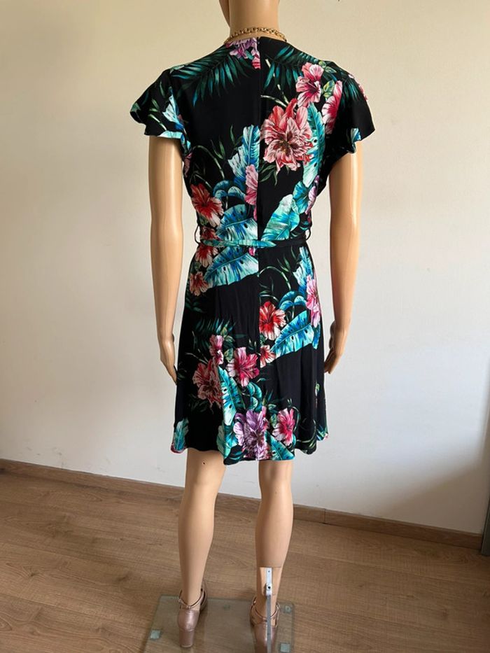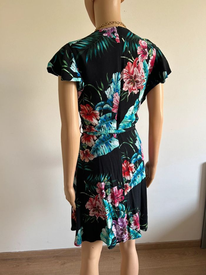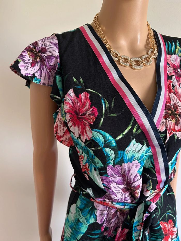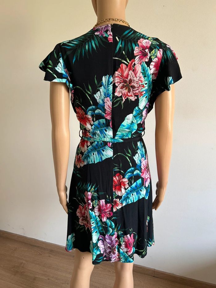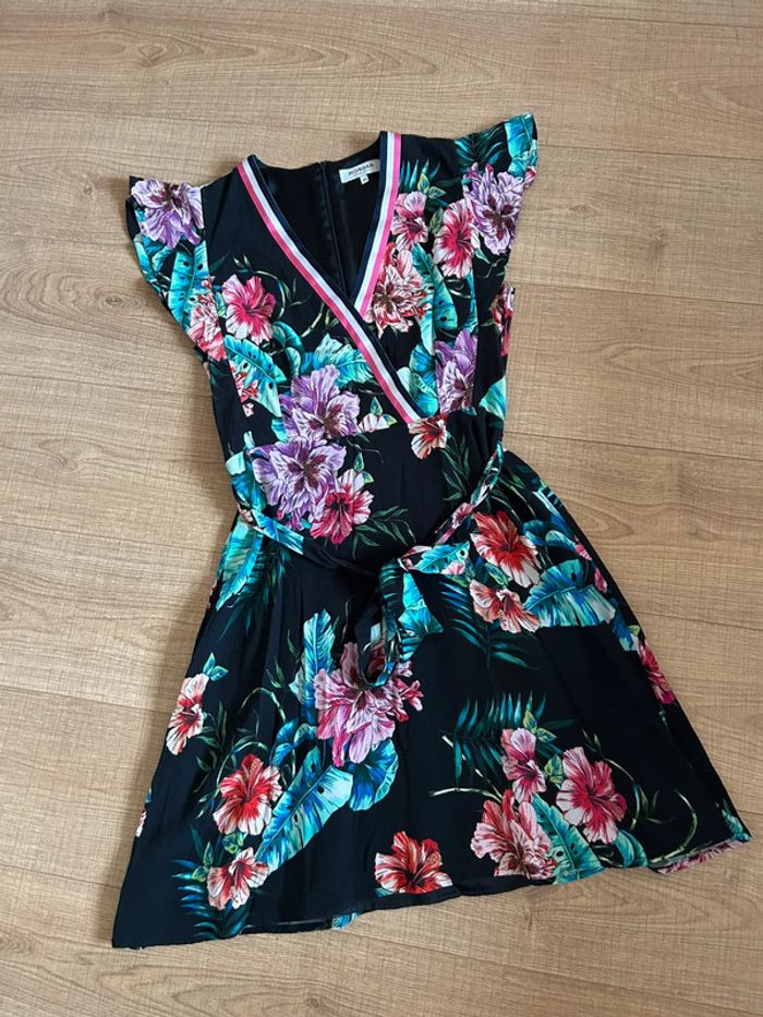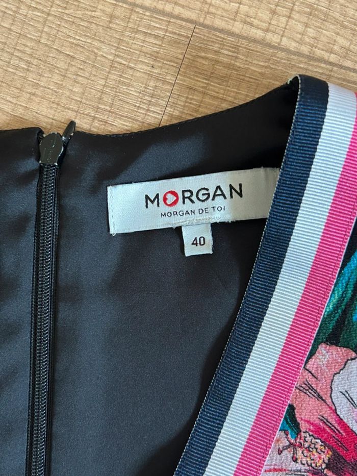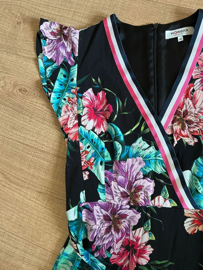 Magnifique robe noire et fleurie à manches courtes, de marque Morgan.