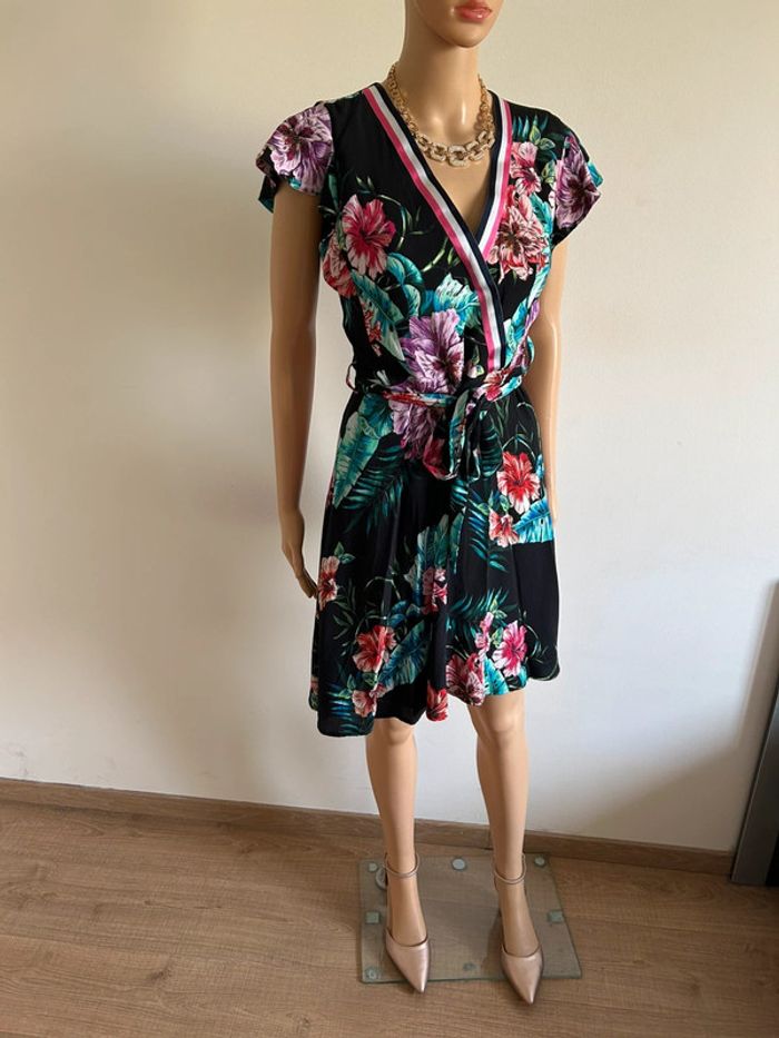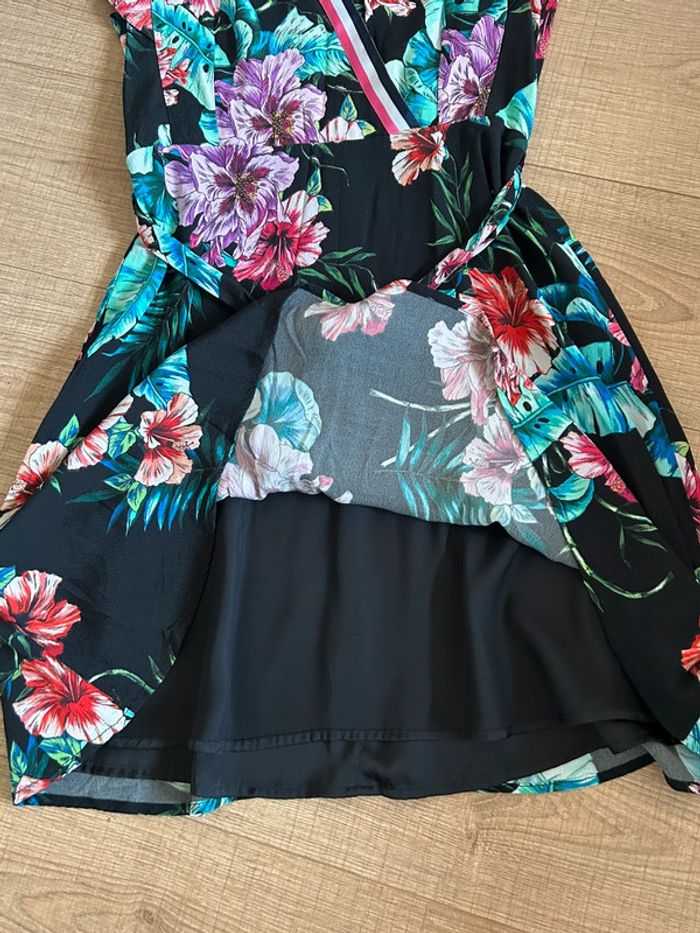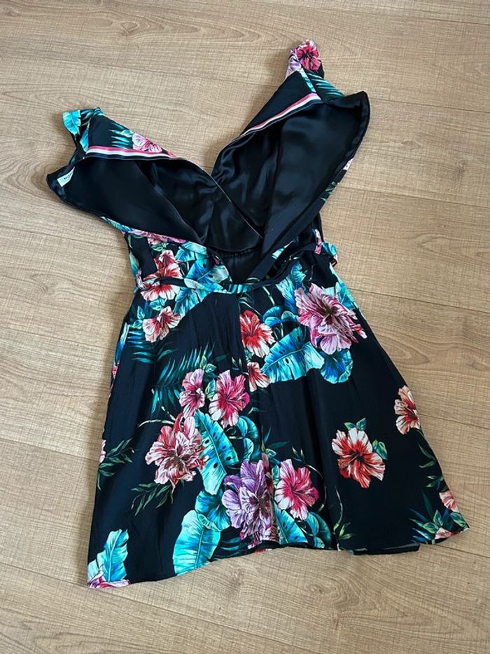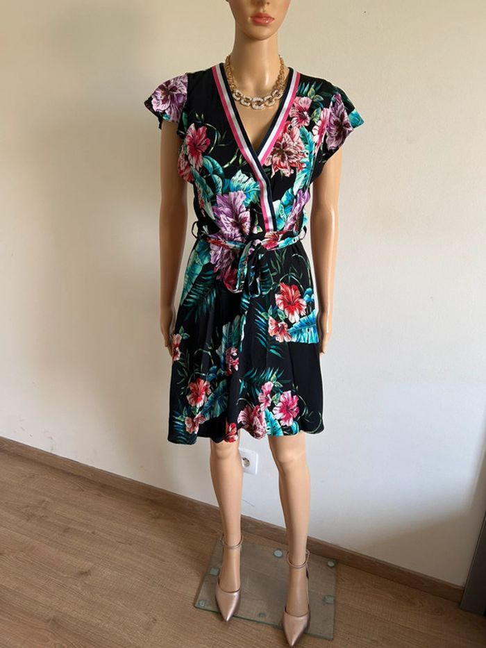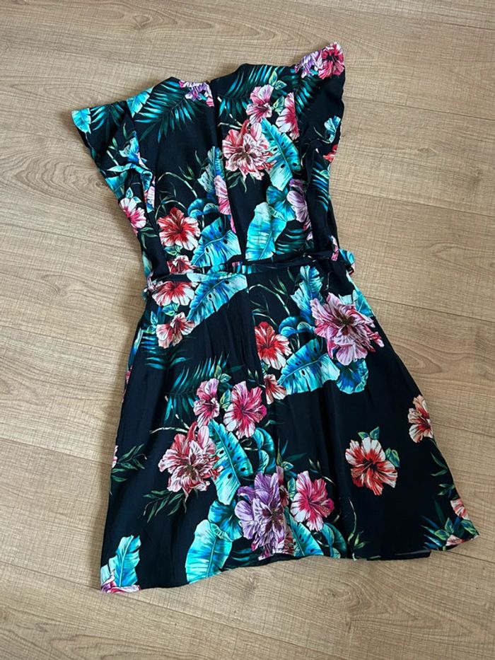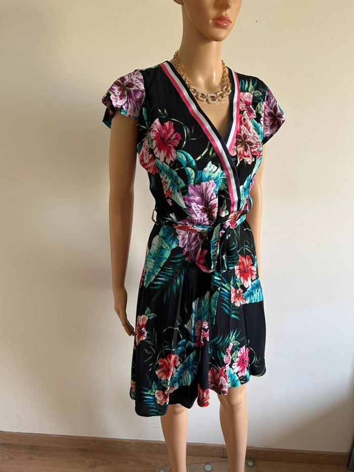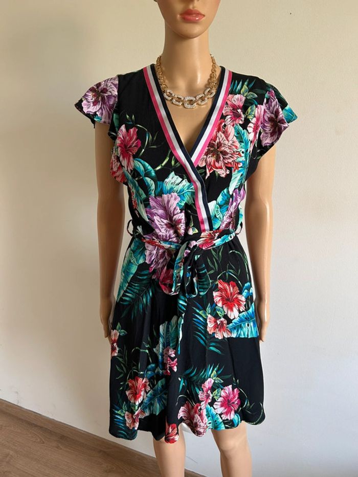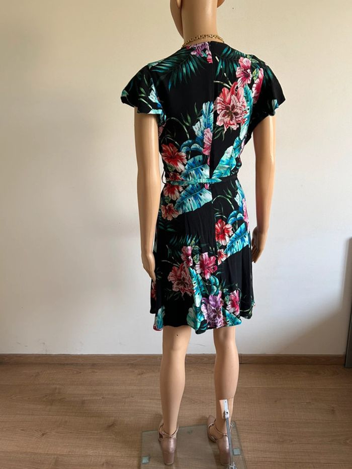 Magnifique robe noire et fleurie à manches courtes, de marque Morgan.