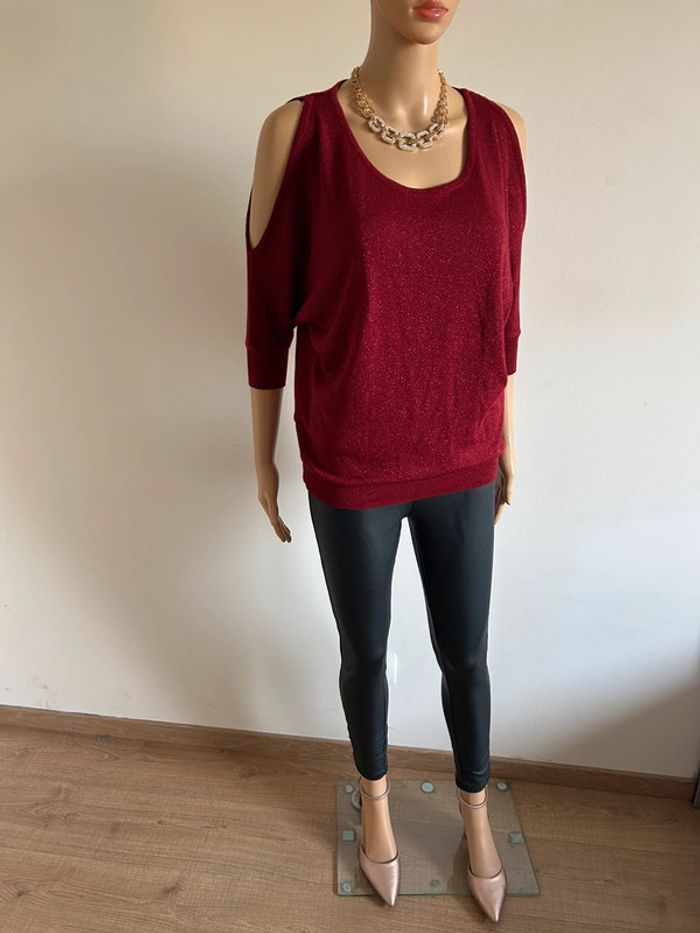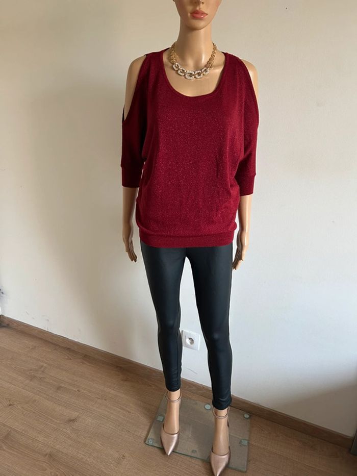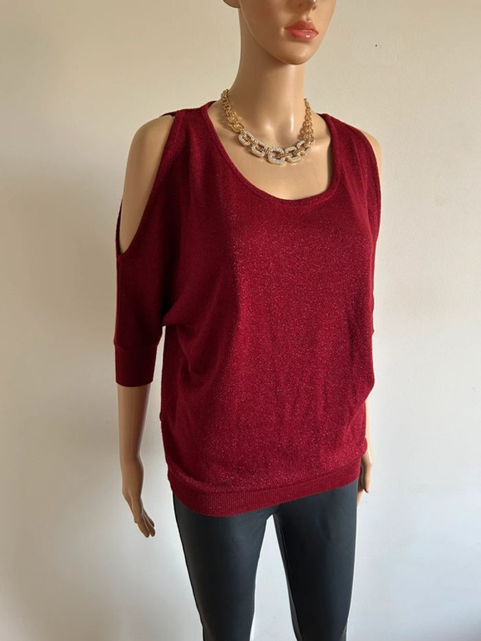 Pull rouge pailleté à manches courtes Morgan taille XS jamais porté - photo numéro 5
